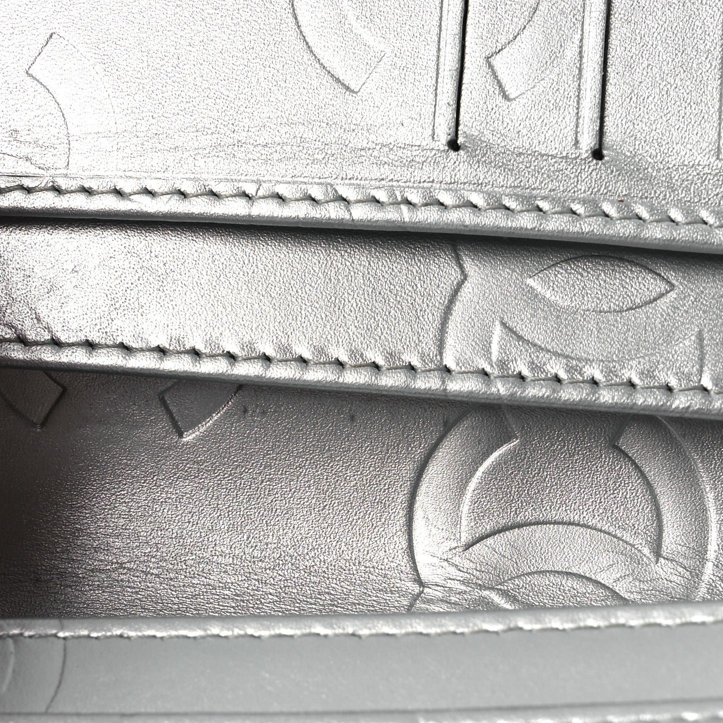 This is an authentic CHANEL Calfskin Quilted Cambon Yen Wallet in Black and Silver. This stylish bifold wallet is crafted of black diamond quilted calfskin leather with a silver leather Chanel CC logo patch. It opens to a silver Chanel CC logo embossed interior with card slots, patch pockets, and a zippered compartment.Follow this item for alerts. Chanel is a registered trademark of Chanel. FASHIONPHILE is not affiliated with Chanel.
