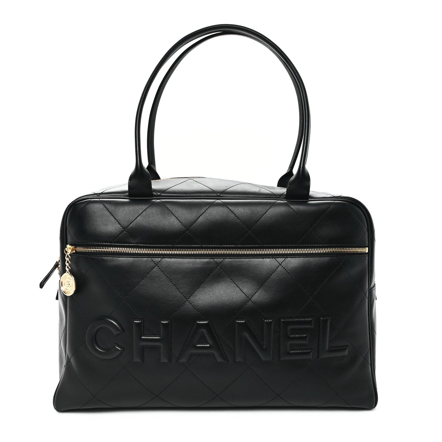 Chanel/ Bags/ Travel & Luggage /Chanel Calfskin Stitched Maxi Logo Bowling Bag Black