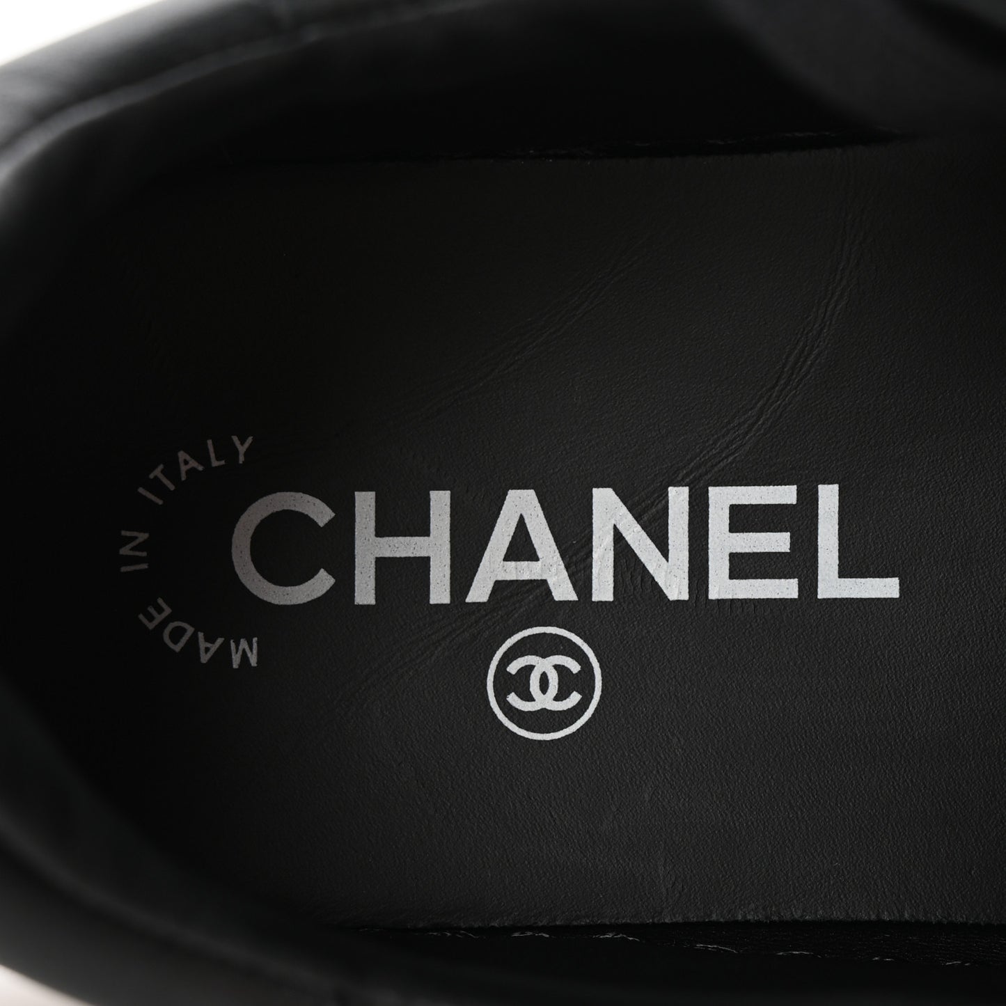 Chanel/ Accessories/ Shoes /Chanel Calfskin Womens Logo Sneakers 38.5 Black