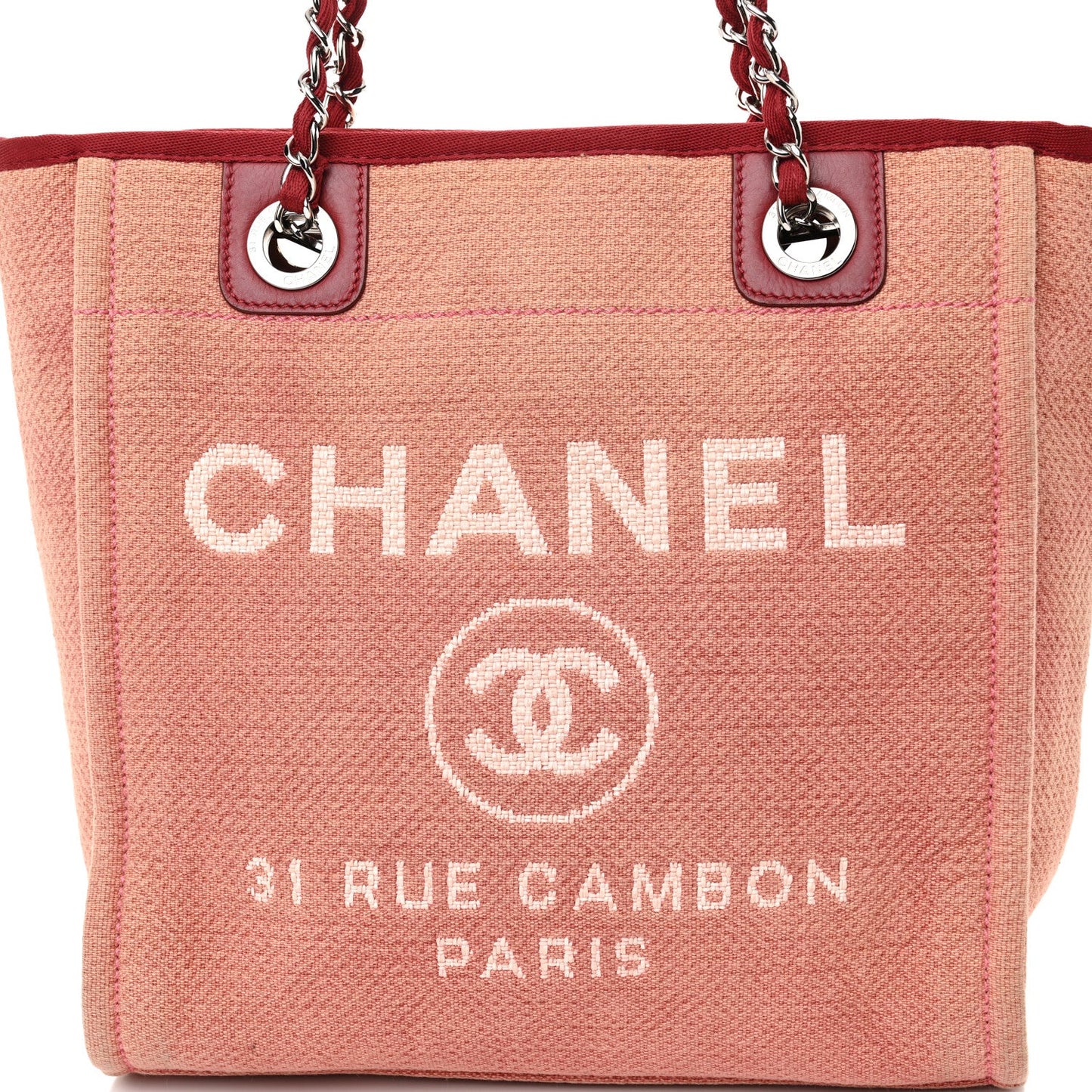This is an authentic CHANEL Canvas Mini Deauville Tote in Red. This stylish tote is crafted of fine canvas in red with red fabric trim and a white woven Chanel Rue Cambon Paris logo. It features fabric threaded silver chain shoulder straps with leather shoulder pads, open top and a red fabric interior with zipper and patch pockets.Follow this item for alerts. Chanel is a registered trademark of Chanel. FASHIONPHILE is not affiliated with Chanel.
