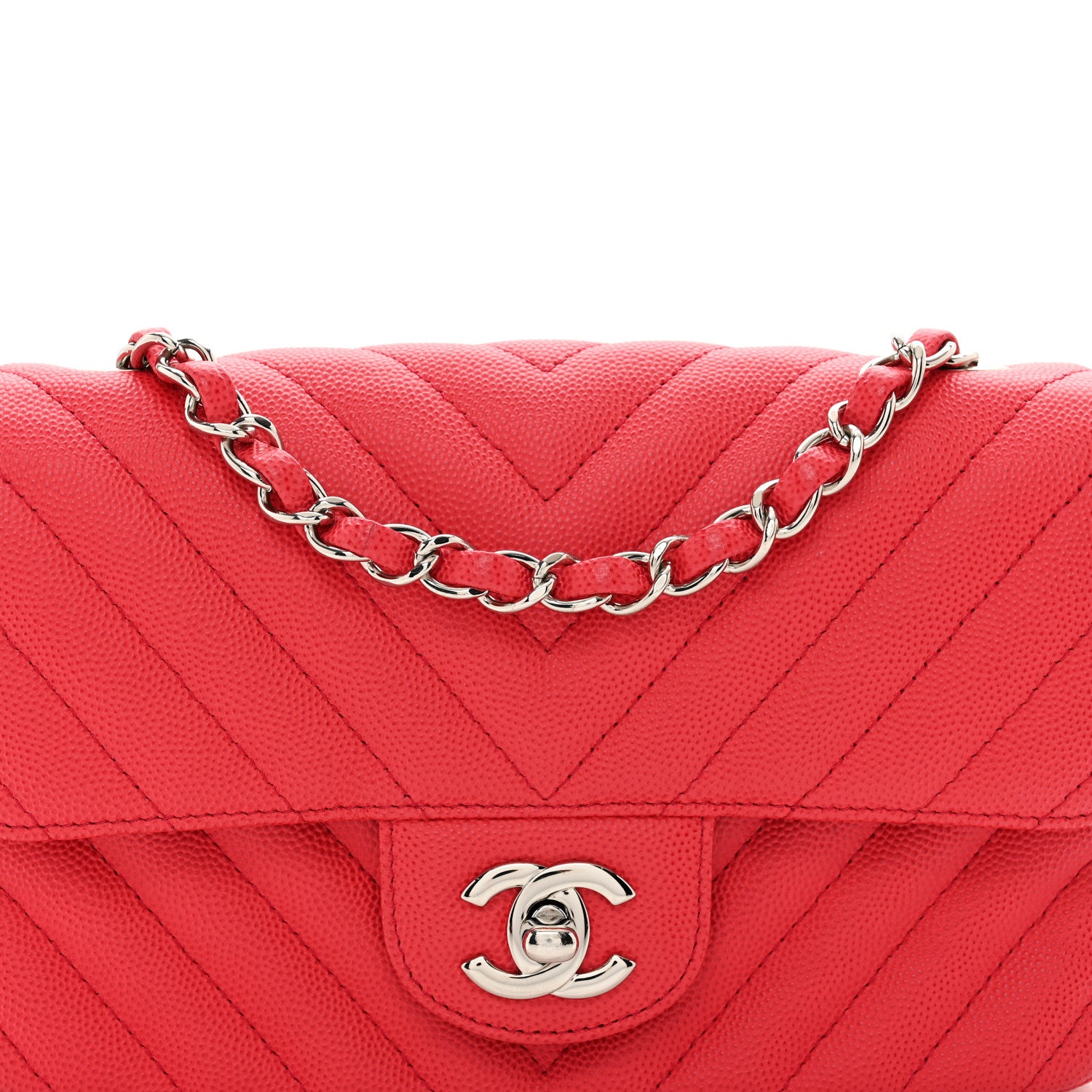Chanel/ Bags/ Shoulder Bags /Chanel Caviar Chevron Quilted Mini Rectangular Flap Red