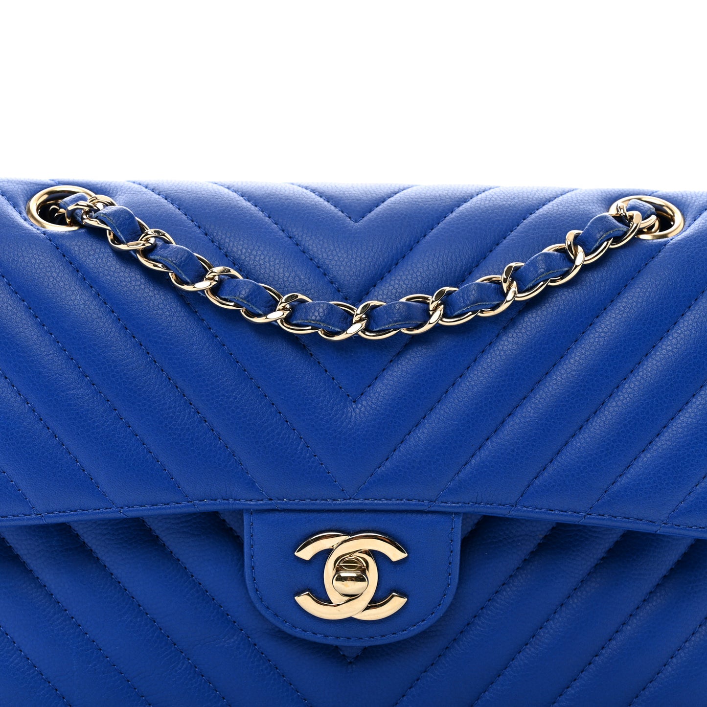 Chanel/ Bags/ Shoulder Bags /Chanel Caviar Chevron Quilted Small Double Flap Blue