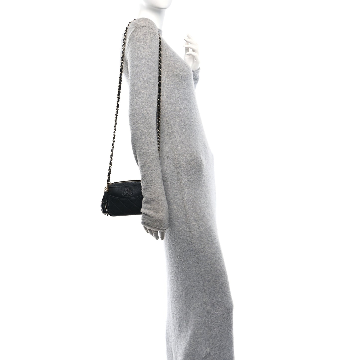 Caviar Flat Quilted Mini Coco Tassel Camera Case Black