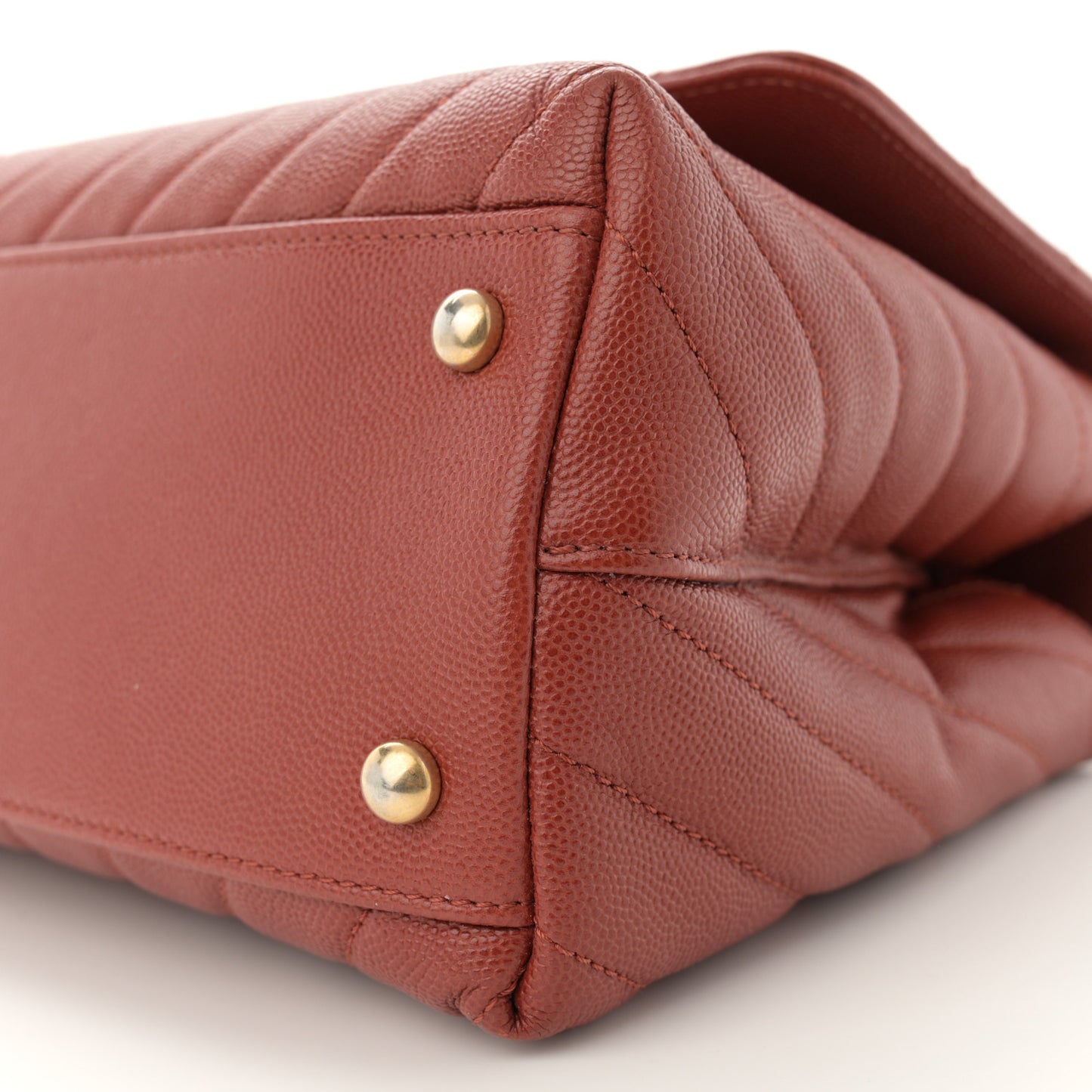 Caviar Lizard Chevron Quilted Small Coco Handle Flap Dark Orange