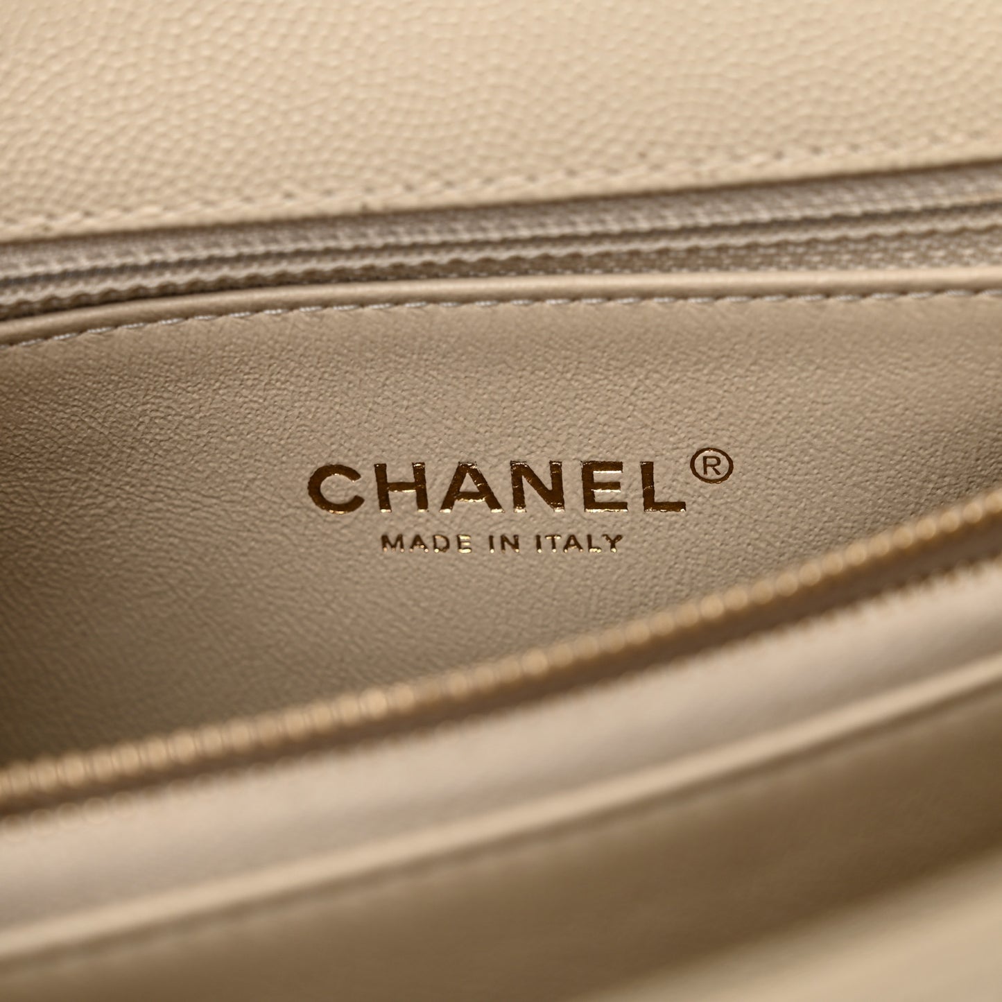 Chanel/ Bags/ Shoulder Bags /Chanel Caviar Lizard Chevron Quilted Small Coco Handle Flap Ivory