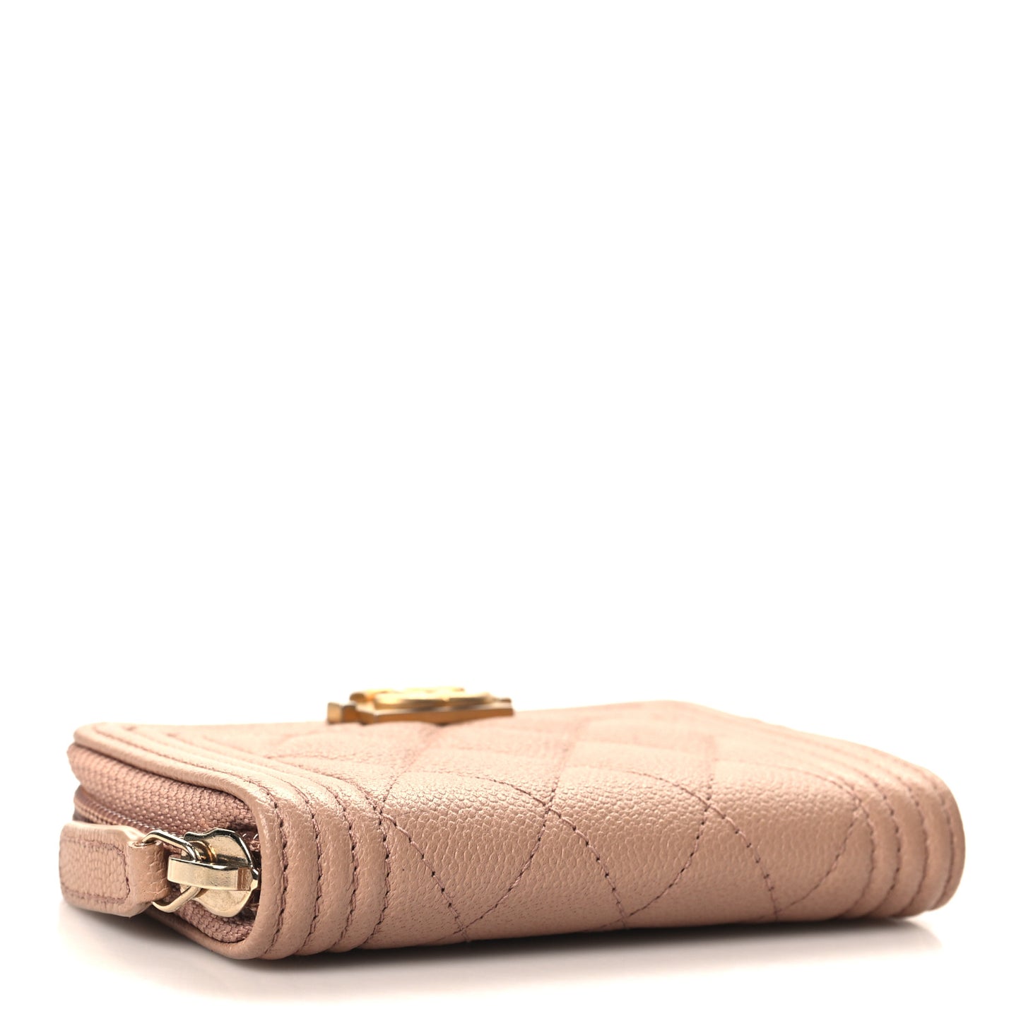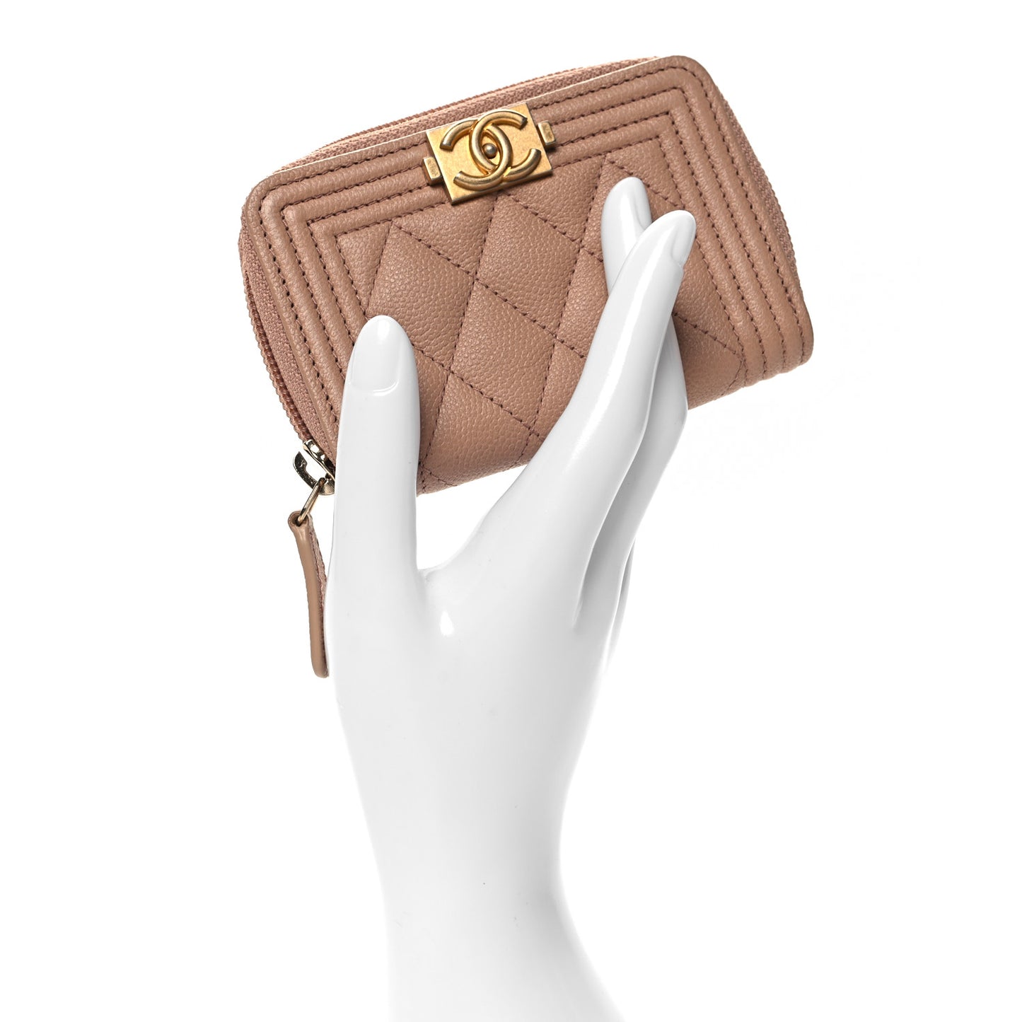 Chanel/ Accessories/ Wallets /Chanel Caviar Quilted Boy Zip Around Coin Purse Wallet Beige