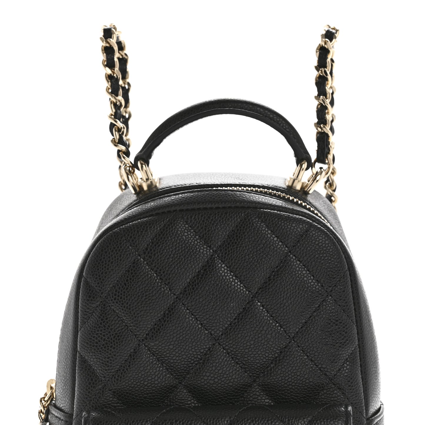 This is an authentic CHANEL Caviar Quilted CC Mini Classic Backpack in Black. This stylish backpack is beautifully crafted of diamond-quilted caviar leather in black. The bag features leather-threaded polished gold chain-link shoulder straps and a front flap pocket with a matching gold classic CC. The wrap-around zippers open the bag to a burgundy fabric interior with card slots.Follow this item for alerts. Chanel is a registered trademark of Chanel. FASHIONPHILE is not affiliated with Chanel.