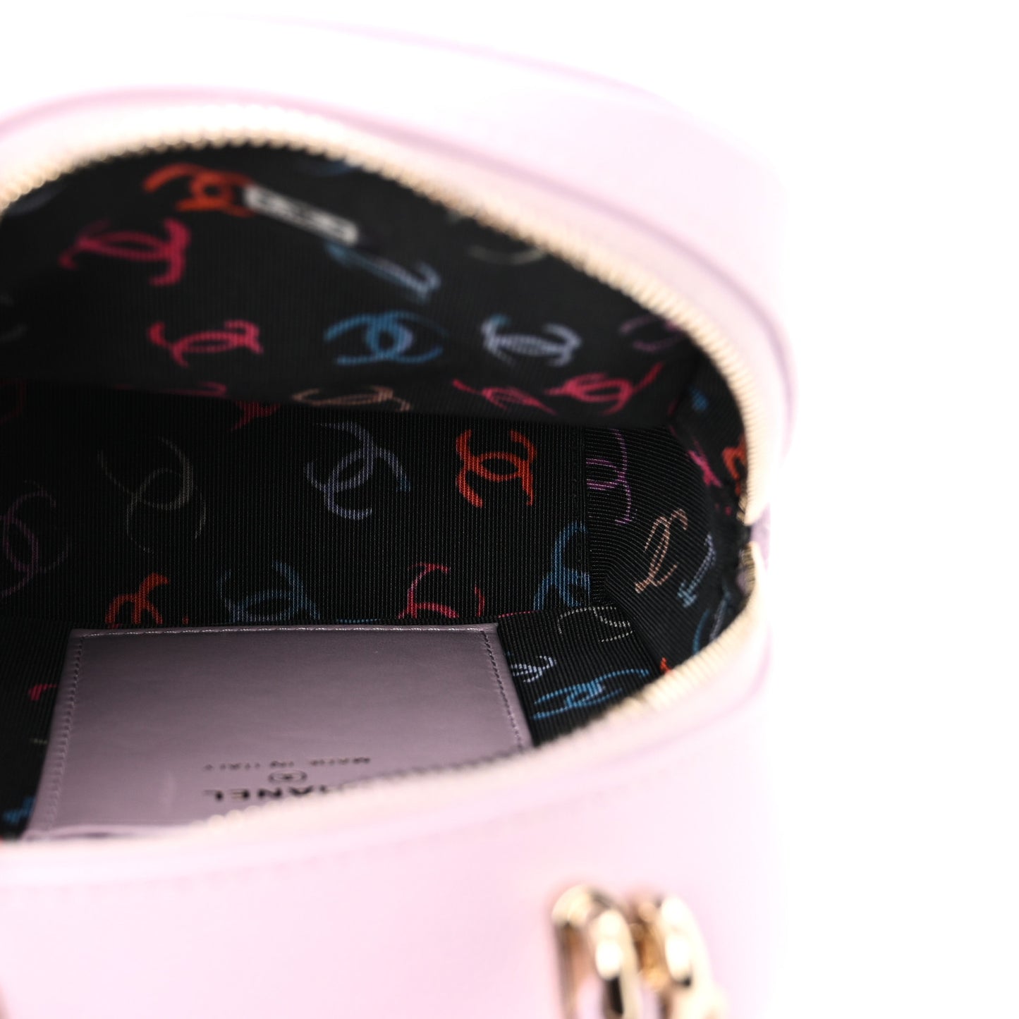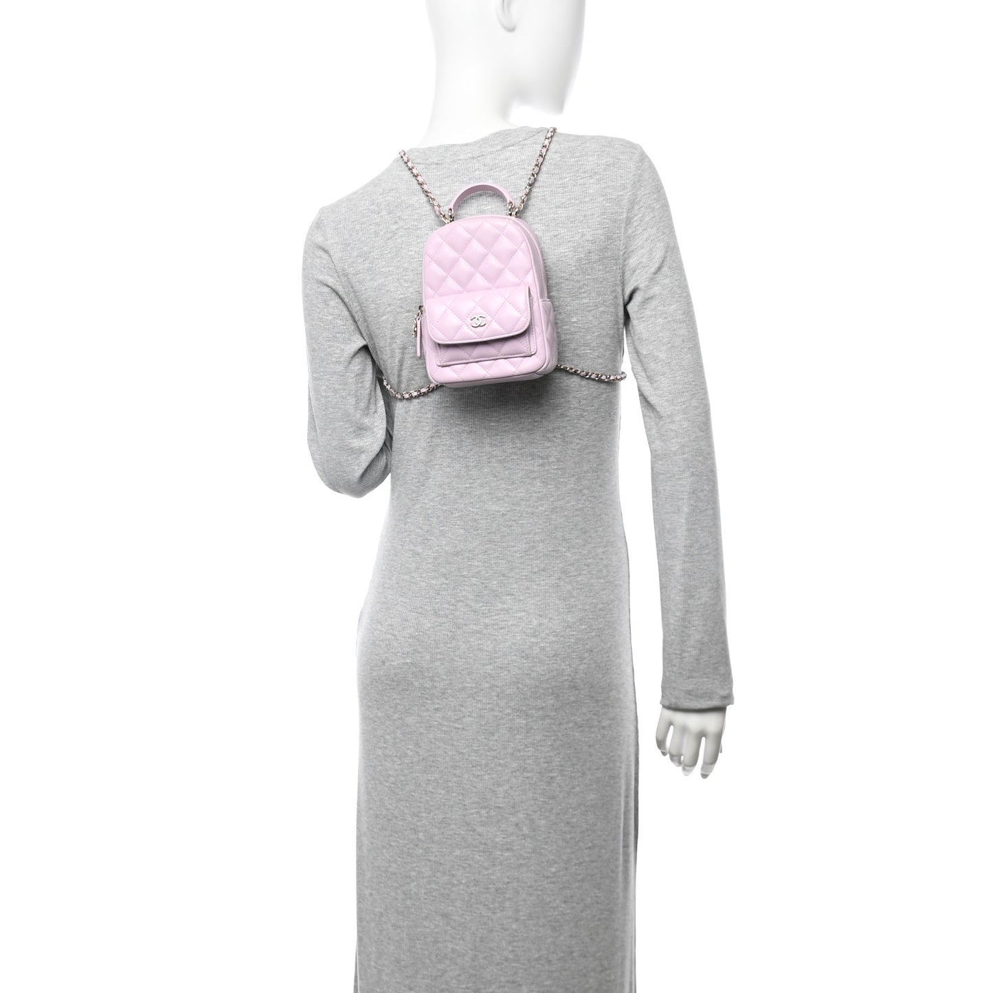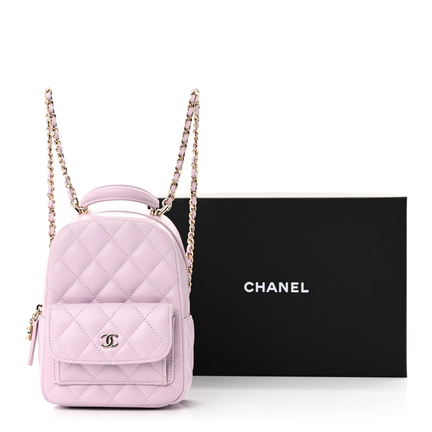 This is an authentic CHANEL Caviar Quilted CC Mini Classic Backpack in Light Purple. This stylish backpack is beautifully crafted of diamond-quilted caviar leather in purple. The bag features adjustable leather-threaded polished gold chain-link shoulder straps and a front flap pocket with a matching gold classic CC. The wrap-around zippers open the bag to a black and multicolor fabric interior with a patch pocket.Follow this item for alerts. Chanel is a registered trademark of Chanel. FASHIONPHILE is not affiliated with Chanel.