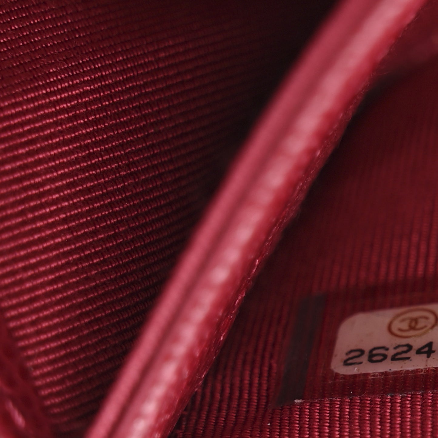 This is an authentic CHANEL Caviar Quilted Flap Card Holder Wallet in Dark Pink. This cardholder is crafted of caviar leather in Dark Pink. It features a light gold Chanel CC logo and opens to a matching fabric interior.Follow this item for alerts. Chanel is a registered trademark of Chanel. FASHIONPHILE is not affiliated with Chanel.
