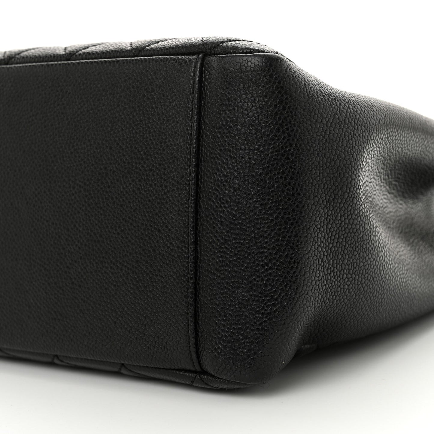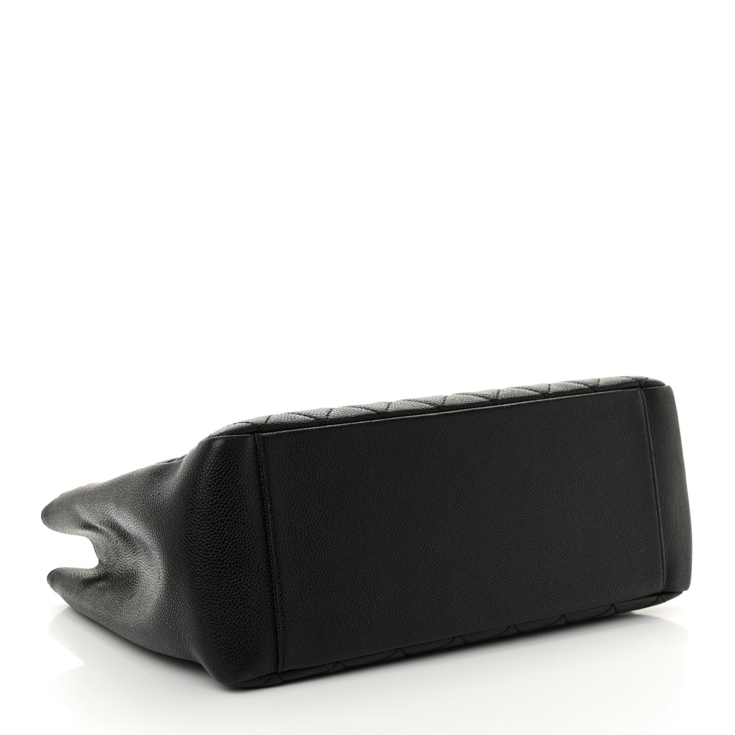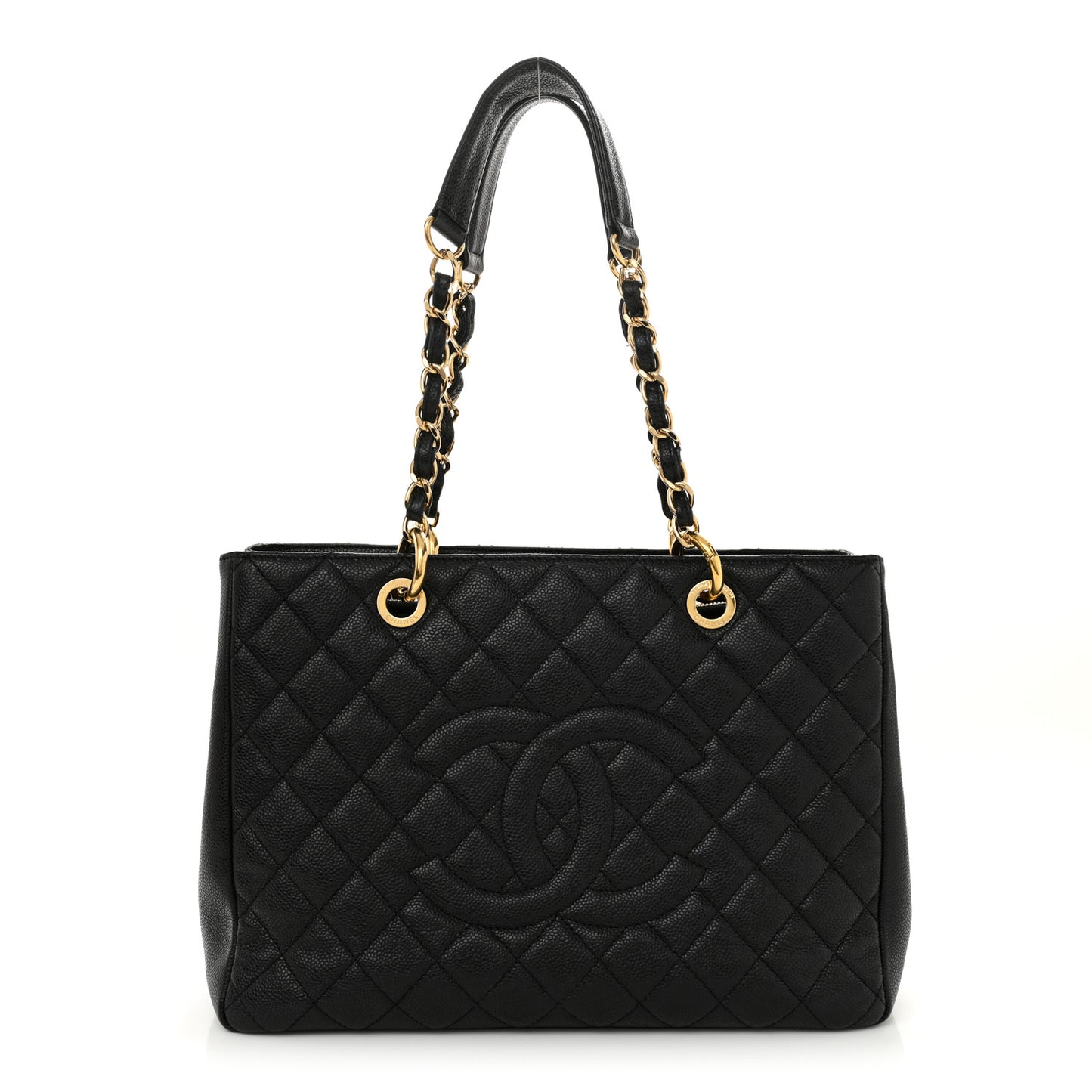 This is an authentic CHANEL Caviar Quilted Grand Shopping Tote GST in Black. This stylish tote is crafted of diamond quilted caviar leather in black. This shoulder bag features leather threaded polished gold chain-link shoulder straps with shoulder pads, a quilted Chanel CC logo on the front and a flat pocket on the rear. The top opens to a partitioned black satin interior with zipper and patch pockets.Follow this item for alerts. Chanel is a registered trademark of Chanel. FASHIONPHILE is not affiliated with Chanel.