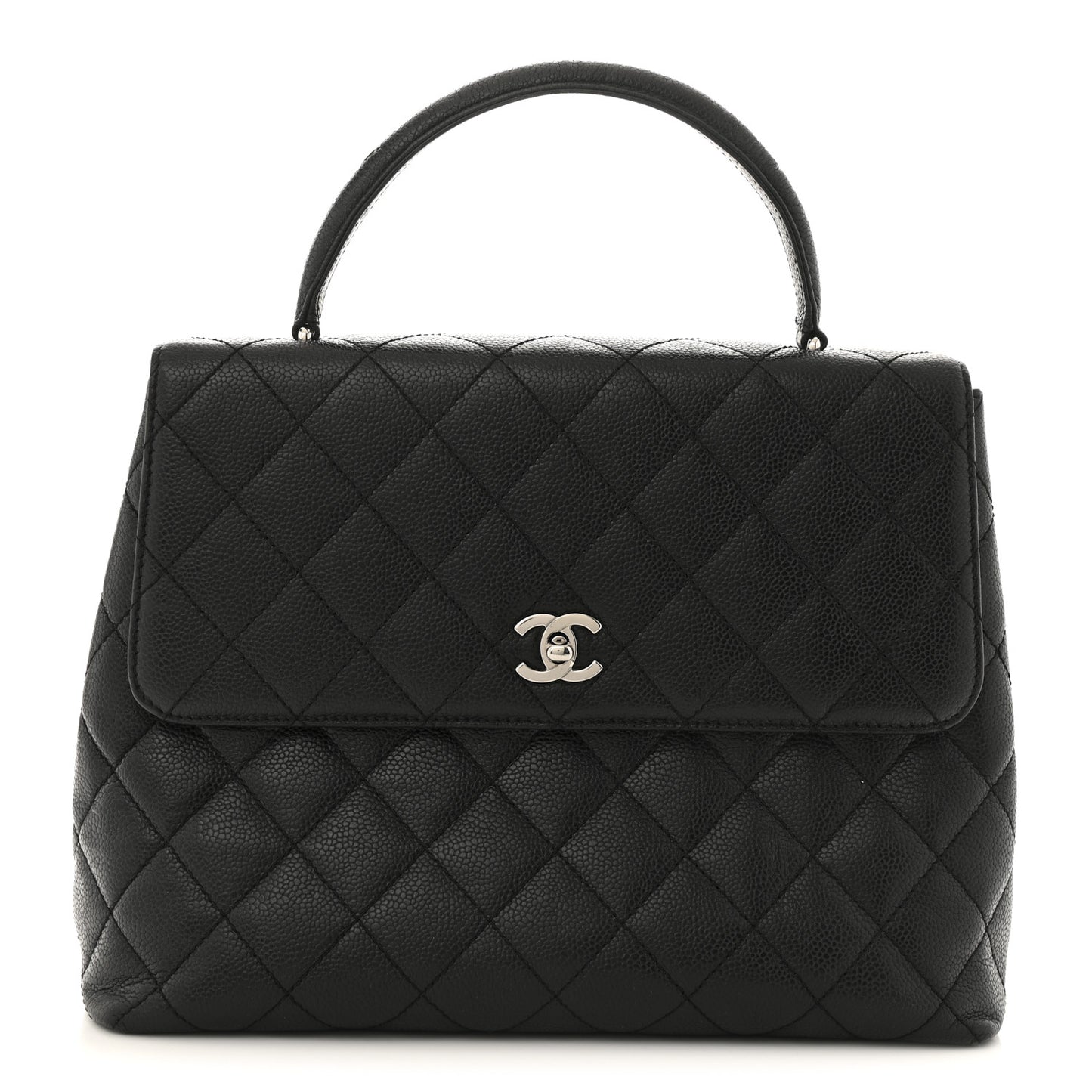 This is an authentic CHANEL Caviar Quilted Jumbo Kelly Flap in Black. This classic top handle bag is crafted of diamond-quilted caviar leather in black. The bag features a looping top handle, a rear patch pocket, and brass hardware as well as a matching Chanel CC turn-lock on the front facing flap. This opens to a black leather interior with zipper and patch pockets.Follow this item for alerts. Chanel is a registered trademark of Chanel. FASHIONPHILE is not affiliated with Chanel.