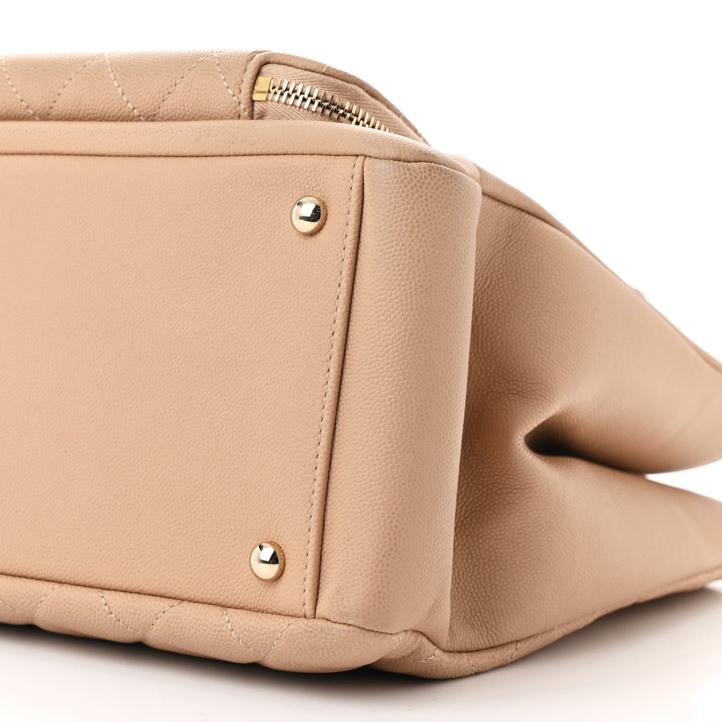 Caviar Quilted Large Business Affinity Shopping Bag Beige