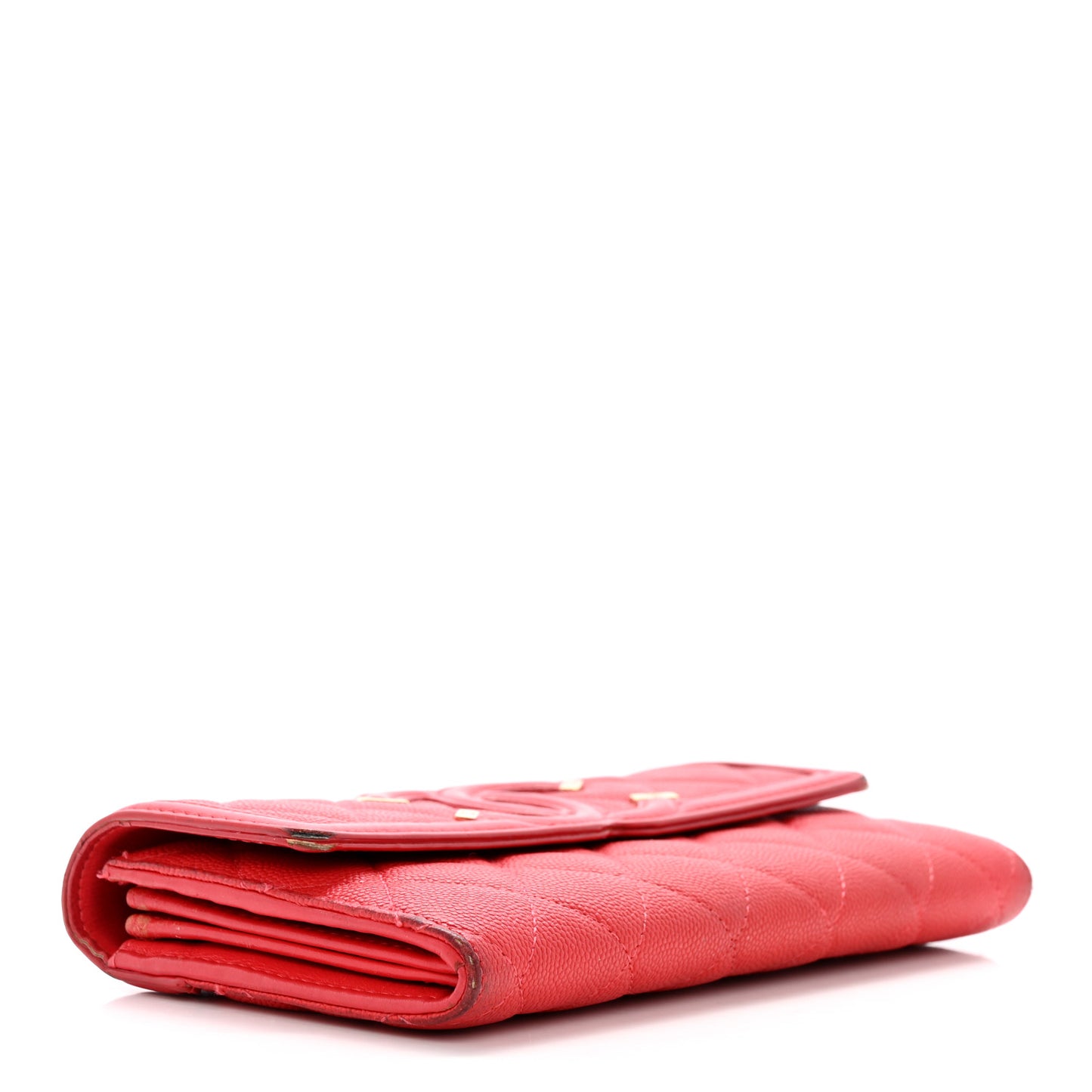 Chanel/ Accessories/ Wallets /Chanel Caviar Quilted Large Filigree Gusset Flap Wallet Red