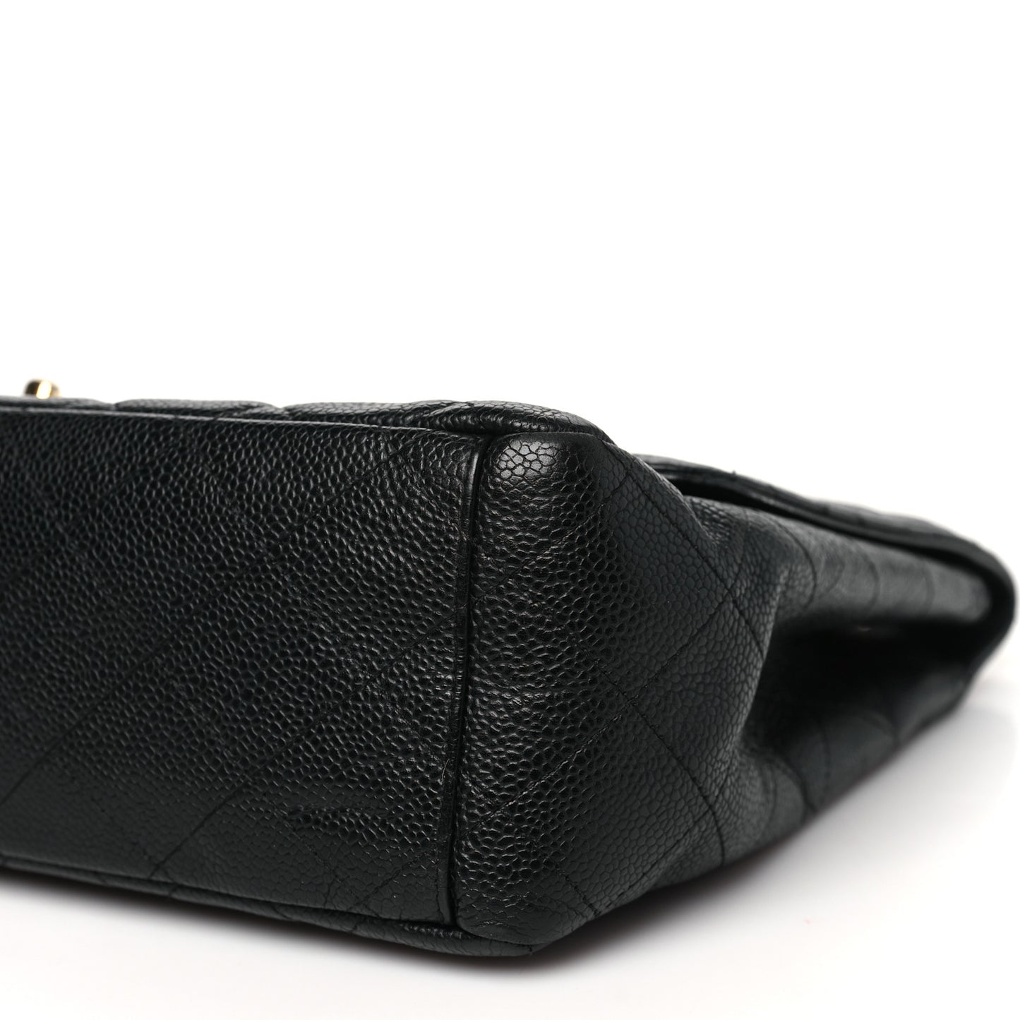 This is an authentic CHANEL Caviar Quilted Maxi Single Flap in Black. This stylish shoulder bag is crafted of luxurious diamond-quilted caviar leather in black. It features a leather-threaded polished gold chain-link shoulder strap and a rear patch pocket. The crossover flap opens with a classic gold CC turn-lock to reveal an inner flap, front pocket, and a black leather interior with zipper and patch pockets.Follow this item for alerts. Chanel is a registered trademark of Chanel. FASHIONPHILE is not affiliated with Chanel.