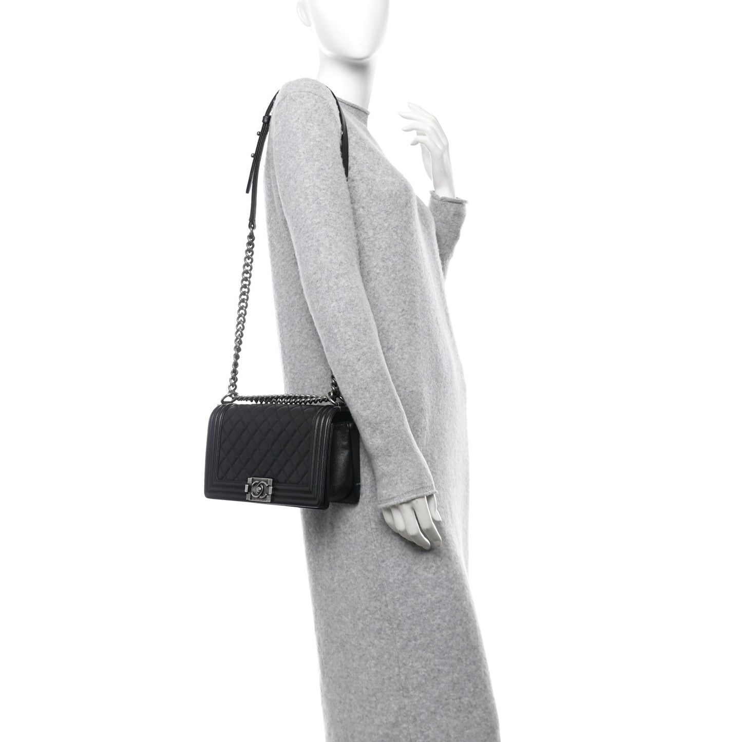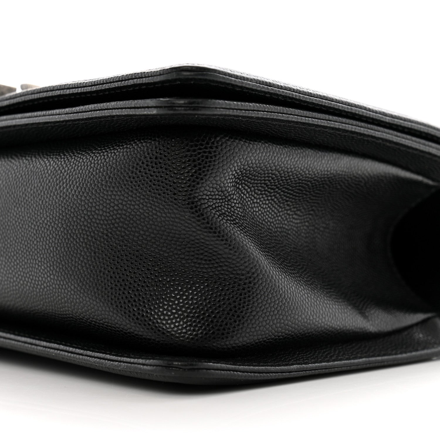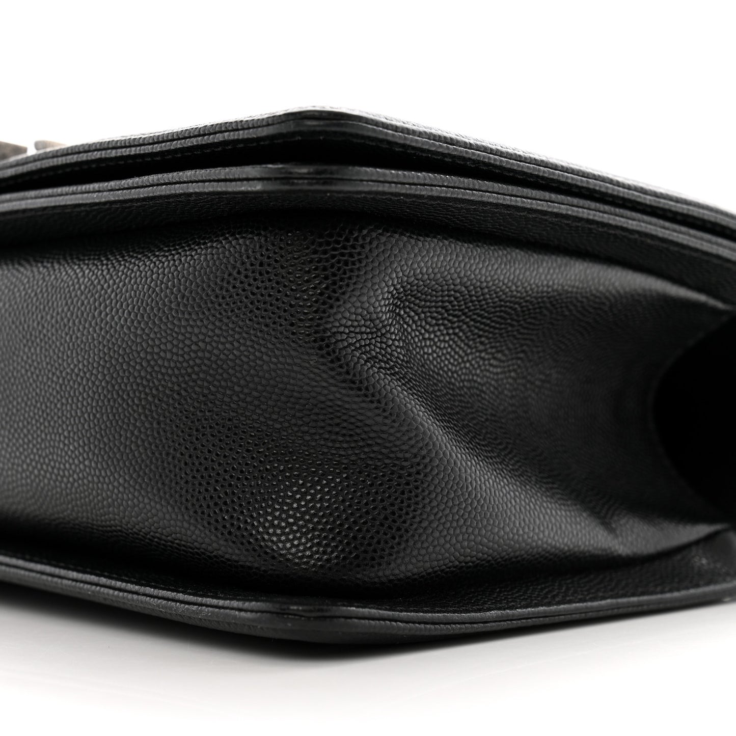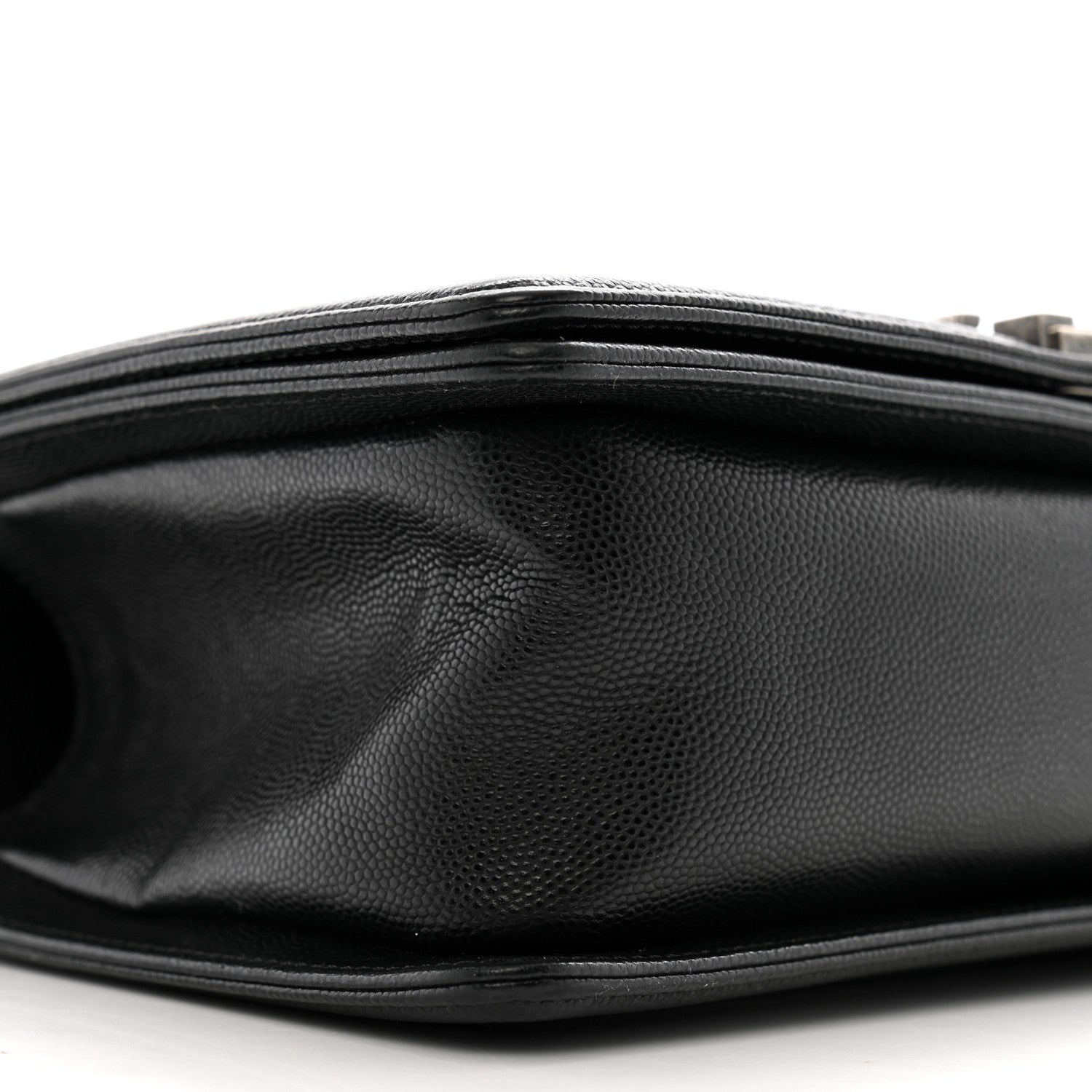 This is an authentic CHANEL Caviar Quilted Medium Boy Flap in Black. This stylish shoulder bag is crafted of black caviar leather with ruthenium hardware. The flap opens to a black leather interior with a patch pocket.Follow this item for alerts. Chanel is a registered trademark of Chanel. FASHIONPHILE is not affiliated with Chanel.