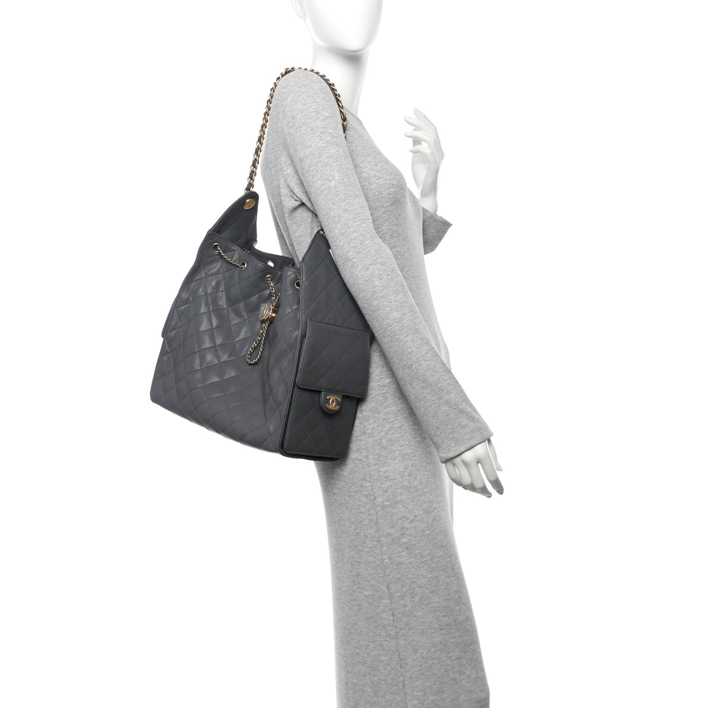 This is an authentic CHANEL Caviar Quilted Medium Chanel 25 Handbag in Dark Gray. This chic shoulder bag is crafted of dark grey caviar calfskin leather. It features a gold chain leather shoulder strap, two side pockets, and gold-tone hardware. The top opens to a matching fabric interior with a patch pocket and matching removable pouch.Follow this item for alerts. Chanel is a registered trademark of Chanel. FASHIONPHILE is not affiliated with Chanel.