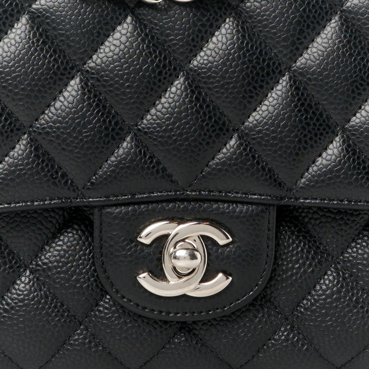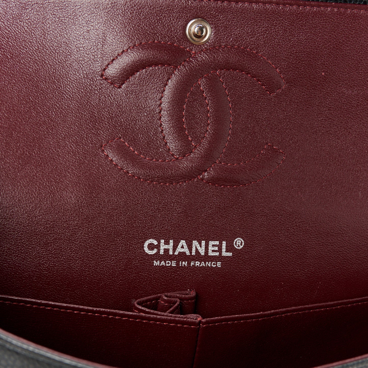 This is an authentic CHANEL Caviar Quilted Medium Double Flap in Black. This elegant shoulder bag is crafted of luxurious caviar textured leather in black. The bag features a leather-threaded silver chain-link shoulder strap, a rear patch pocket, and a crossover flap with a silver classic CC turn lock. The flap opens to reveal an inner flap and a burgundy leather interior with pockets.Follow this item for alerts. Chanel is a registered trademark of Chanel. FASHIONPHILE is not affiliated with Chanel.