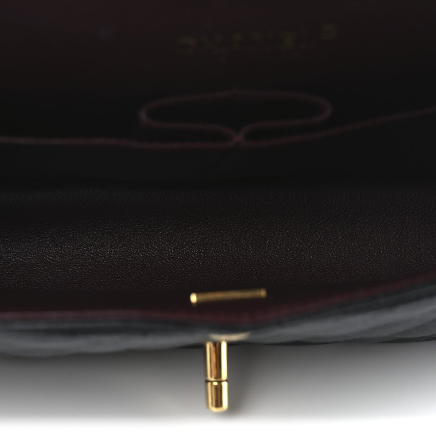 This is an authentic CHANEL Caviar Quilted Medium Double Flap in Black. This bag is crafted of black caviar textured leather and gold hardware. The flap opens to a burgundy leather interior with patch pockets.Follow this item for alerts. Chanel is a registered trademark of Chanel. FASHIONPHILE is not affiliated with Chanel.