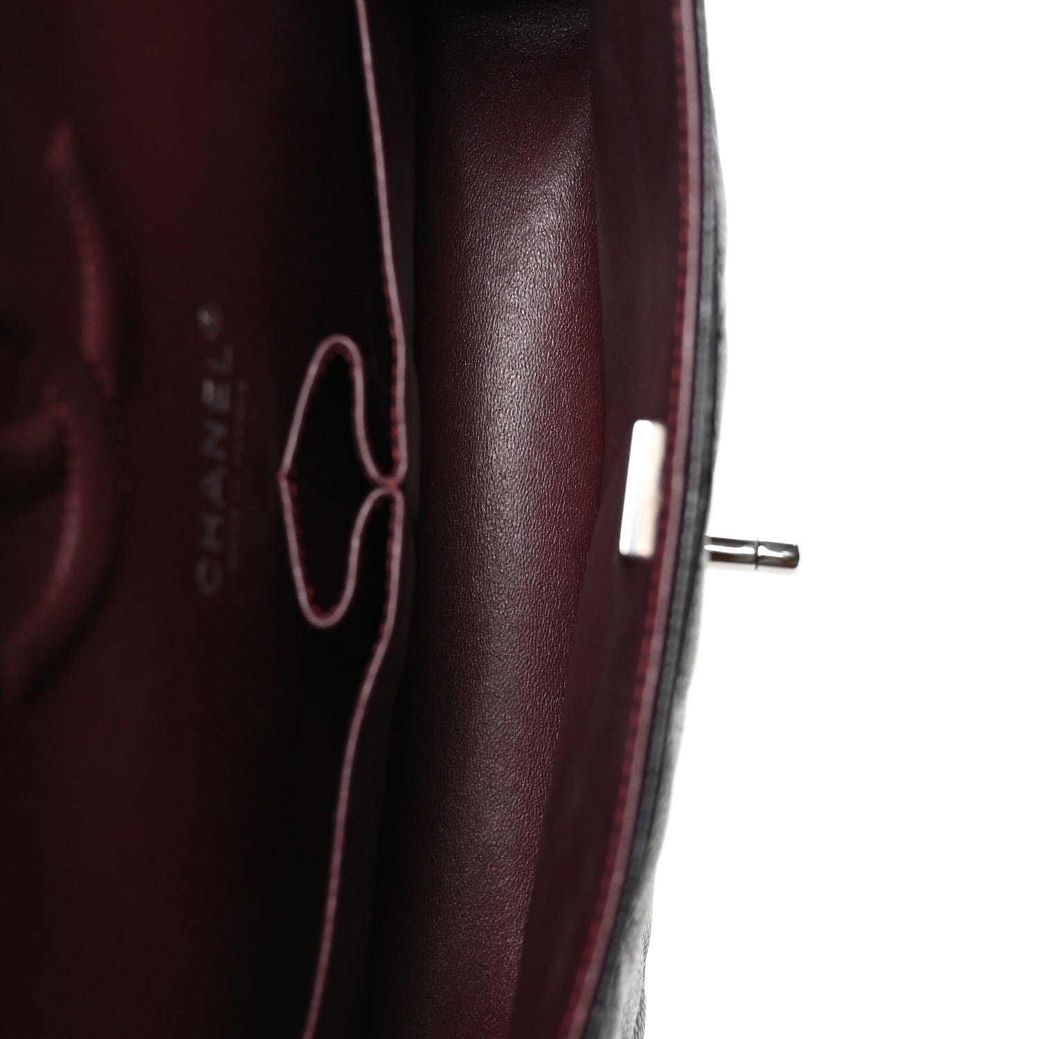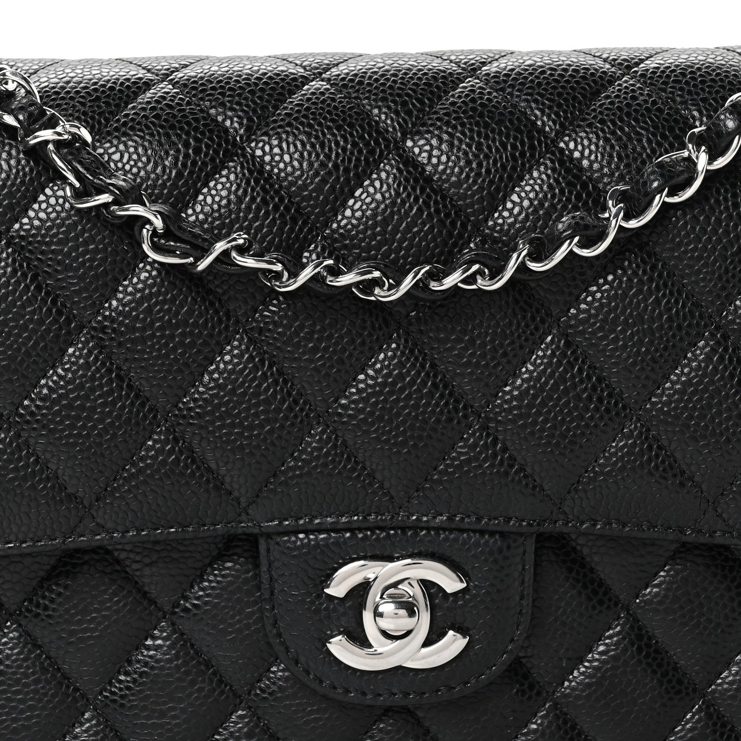 This is an authentic CHANEL Caviar Quilted Medium Double Flap in Black. This elegant shoulder bag is crafted of luxurious caviar textured leather in black. The bag features a leather-threaded silver chain-link shoulder strap, a rear patch pocket, and a crossover flap with a silver classic CC turn lock. The flap opens to reveal an inner flap and a burgundy leather interior with pockets.Follow this item for alerts. Chanel is a registered trademark of Chanel. FASHIONPHILE is not affiliated with Chanel.