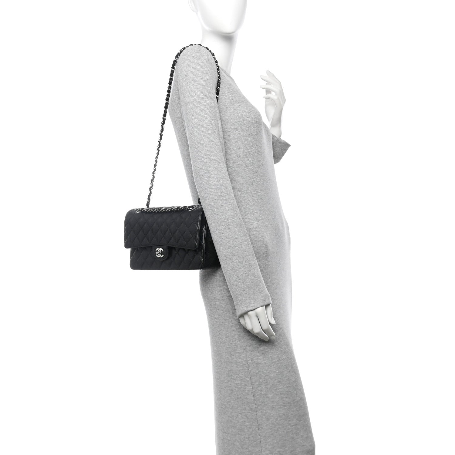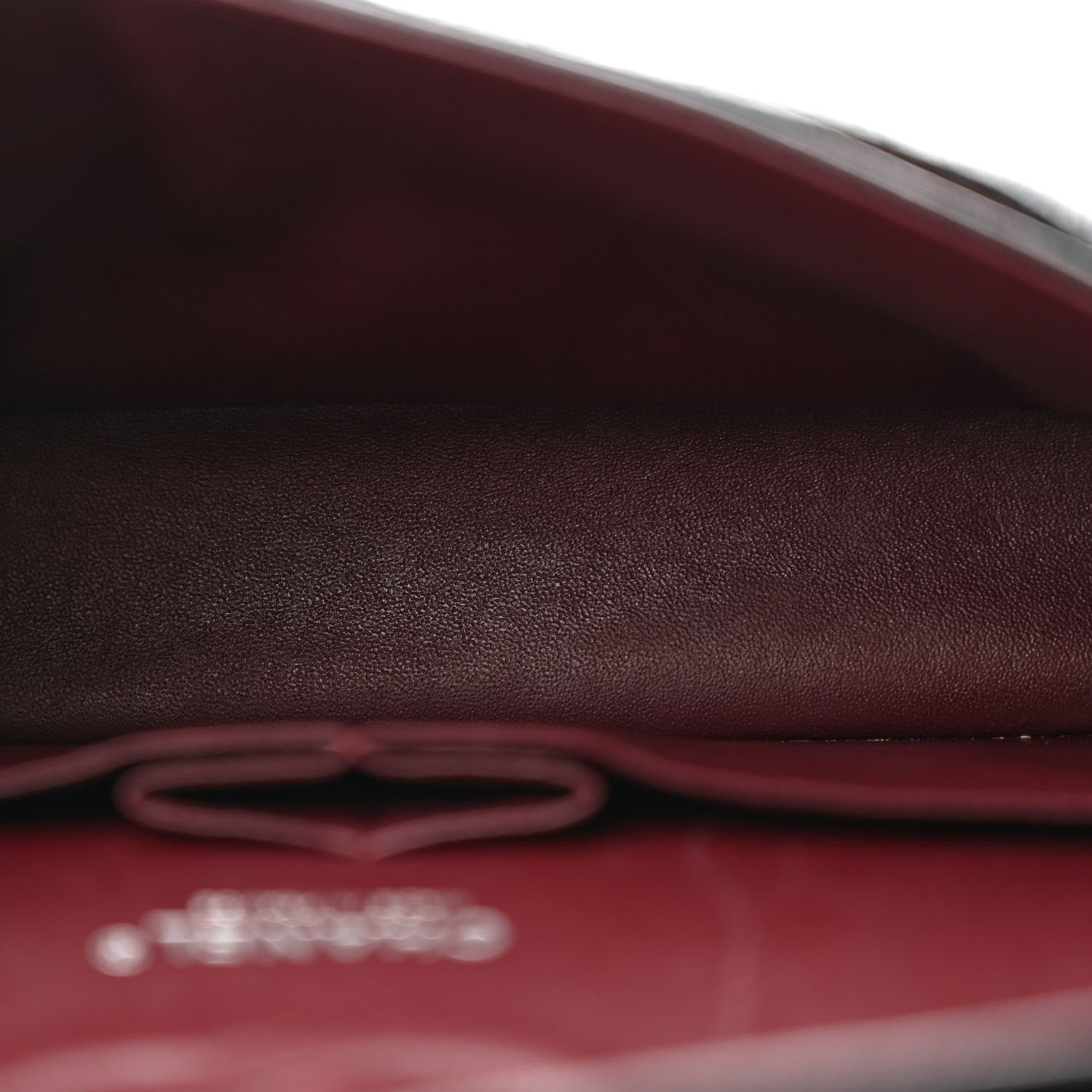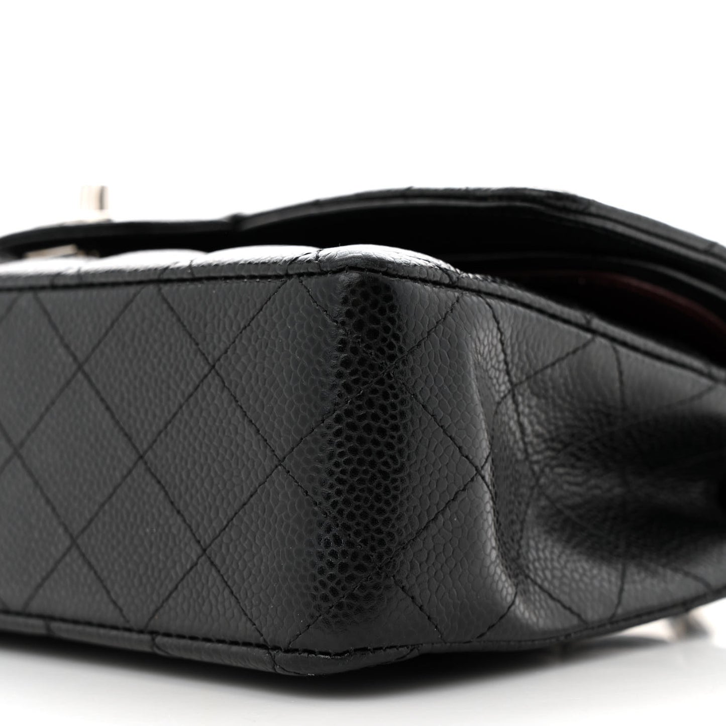 This is an authentic CHANEL Caviar Quilted Medium Double Flap in Black. This elegant shoulder bag is crafted of luxurious caviar textured leather in black. The bag features leather threaded silver chain-link shoulder strap, a rear patch pocket, and a crossover flap with a silver classic CC turn lock. The flap opens to reveal an inner flap and a red leather interior with patch pockets.Follow this item for alerts. Chanel is a registered trademark of Chanel. FASHIONPHILE is not affiliated with Chanel.