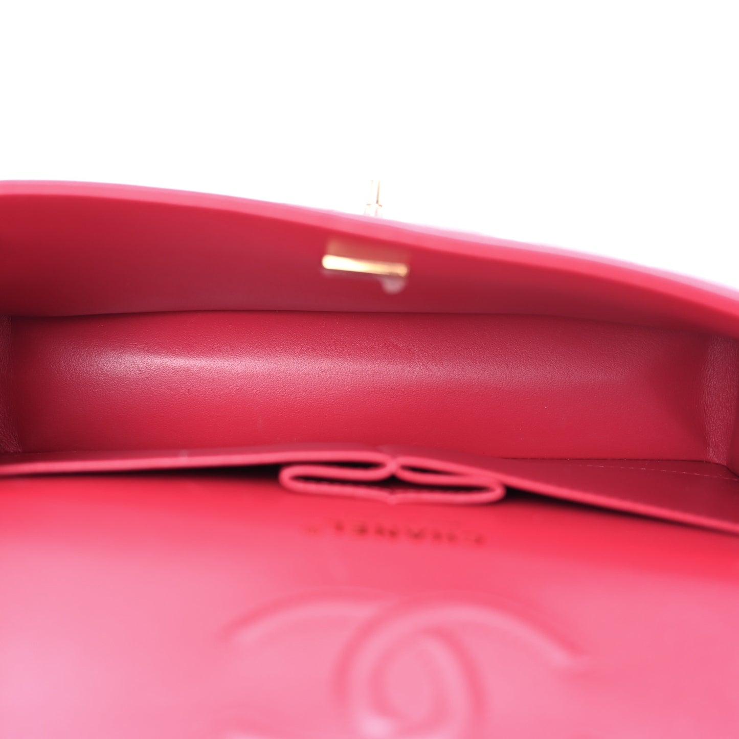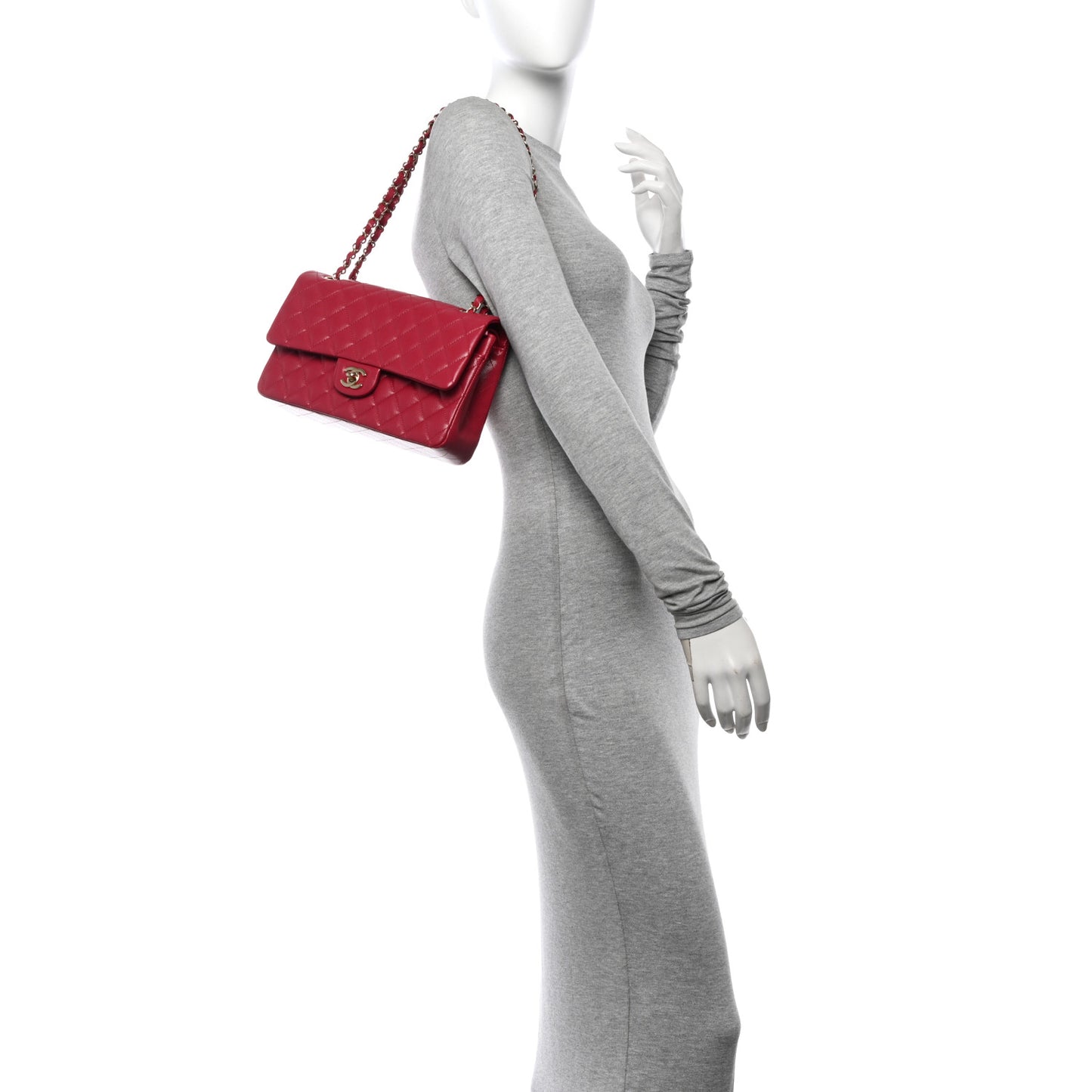 This is an authentic CHANEL Caviar Quilted Medium Double Flap in Dark Pink. This medium classic shoulder bag is crafted of diamond quilted caviar leather in dark pink. The shoulder bag features a polished gold chain link leather threaded shoulder strap and a front flap with a polished gold Chanel CC turn lock. This handbag opens to a second flap and a matching matte leather interior with patch pockets.Follow this item for alerts. Chanel is a registered trademark of Chanel. FASHIONPHILE is not affiliated with Chanel.