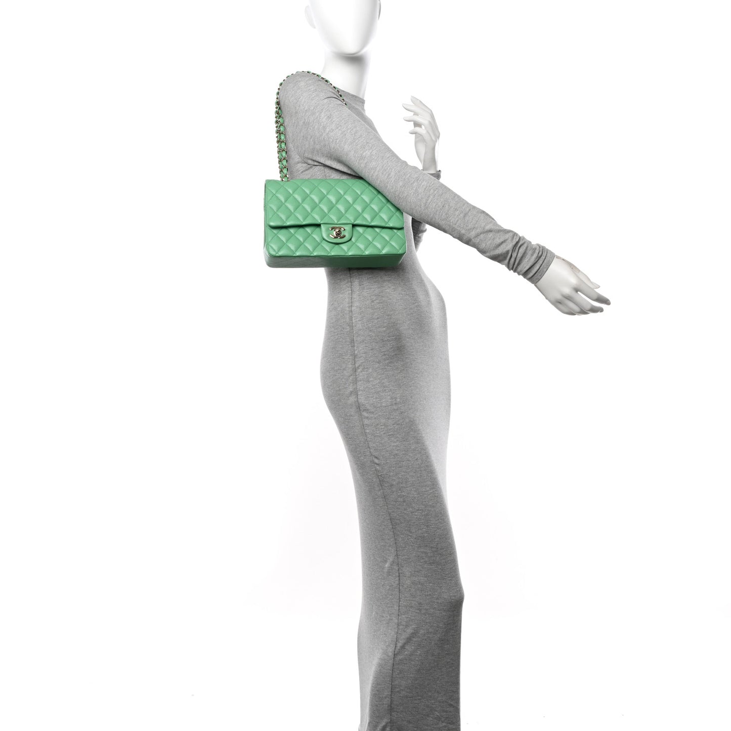 This is an authentic CHANEL Caviar Quilted Medium Double Flap in Green. This stunning shoulder bag is crafted of luxurious diamond quilted caviar leather in a beautiful shade of green. The bag features a rear patch pocket, a polished light gold chain-link leather-threaded shoulder strap and a front flap with a light gold Chanel CC turn-lock closure. The bag opens to reveal an inner flap with matching leather interior and has patch pockets and a front pocket.Follow this item for alerts. Chanel is a registered trademark of Chanel. FASHIONPHILE is not affiliated with Chanel.