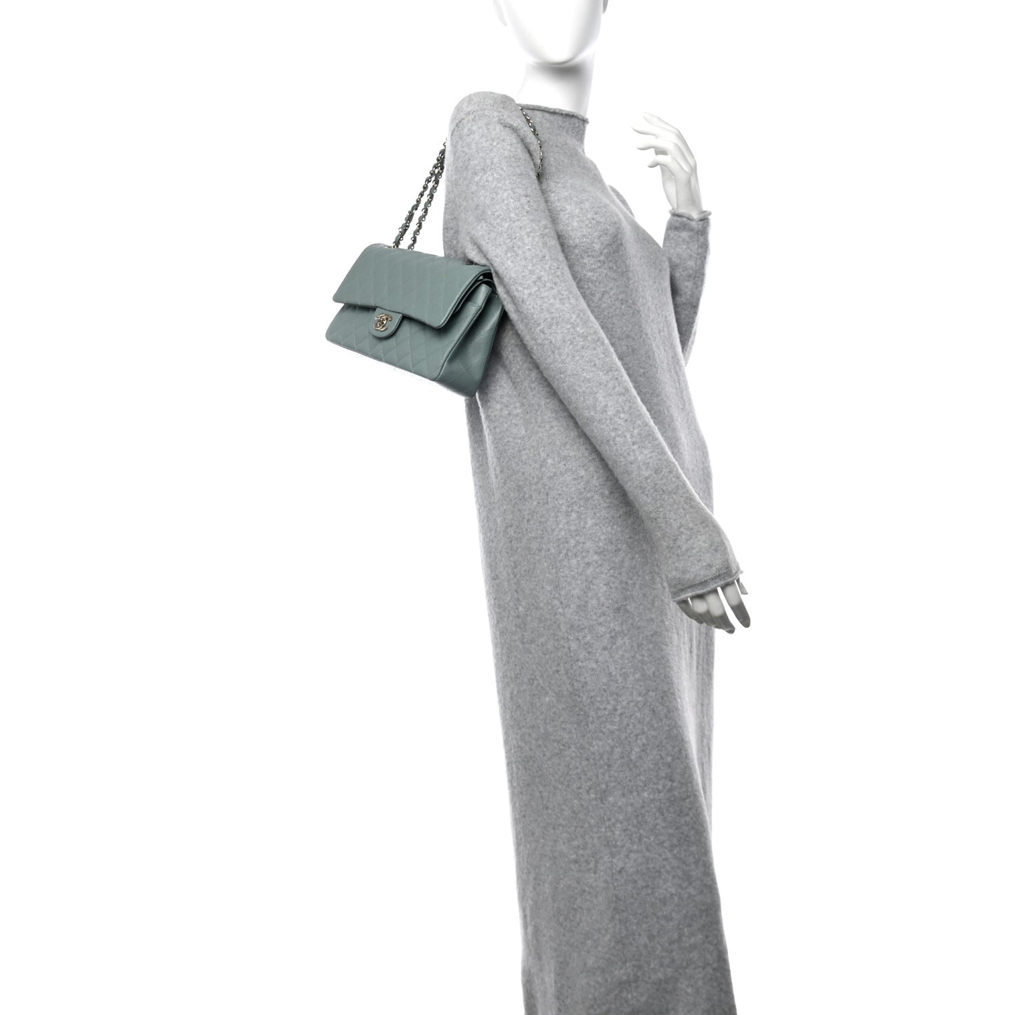 This is an authentic CHANEL Caviar Quilted Medium Double Flap in Light Blue. This medium classic flap bag is crafted of light blue caviar leather. The bag features a light gold chain link shoulder straps threaded with leather and a front flap with a light gold Chanel CC turn lock. The flap opens to a matching leather interior with a zipper compartment and patch pockets.Follow this item for alerts. Chanel is a registered trademark of Chanel. FASHIONPHILE is not affiliated with Chanel.