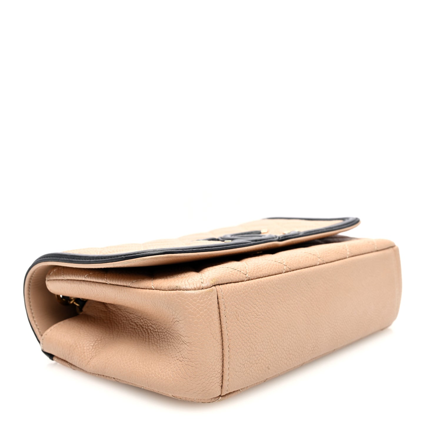 This is an authentic CHANEL Caviar Quilted Small CC Filigree Flap in Beige and Black. This stylish shoulder bag is crafted of luxurious caviar leather in beige. The bag features black leather trim, matte gold chain link leather threaded shoulder straps and a black leather Chanel CC stitched logo on the flap. This opens to a black leather interior with zipper and patch pockets.Follow this item for alerts. Chanel is a registered trademark of Chanel. FASHIONPHILE is not affiliated with Chanel.