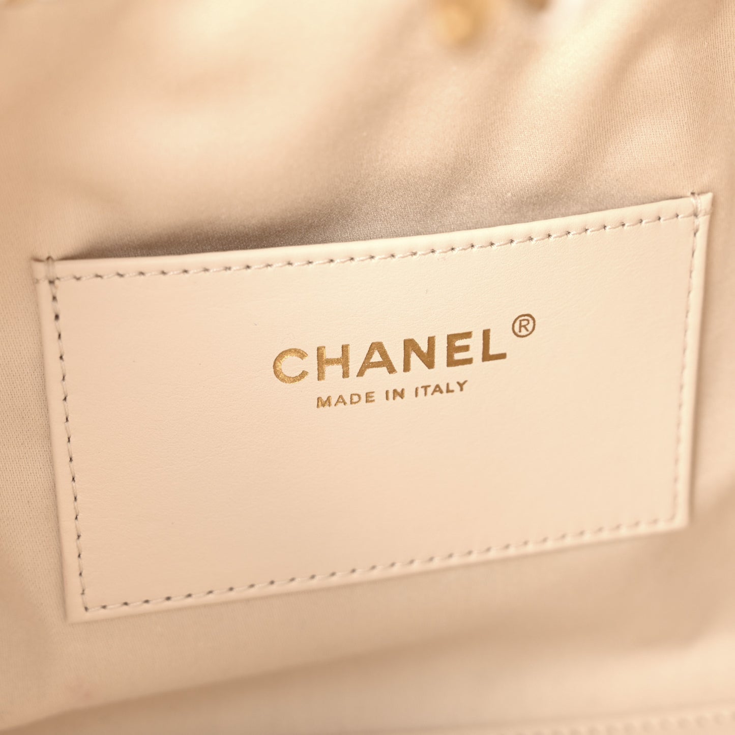This is an authentic CHANEL Caviar Quilted 25 Small Handbag in White. This chic shoulder bag is crafted of diamond quilted caviar leather in white. It features magnetic flap pockets at the sides, a leather-threaded gold-toned chain strap, and a leather-threaded gold-toned top cinch cord with aged gold CC logo adjustment button. This opens the bag to a beige fabric interior with side patch pockets and a leather card slot.Follow this item for alerts. Chanel is a registered trademark of Chanel. FASHIONPHILE is not affiliated with Chanel.