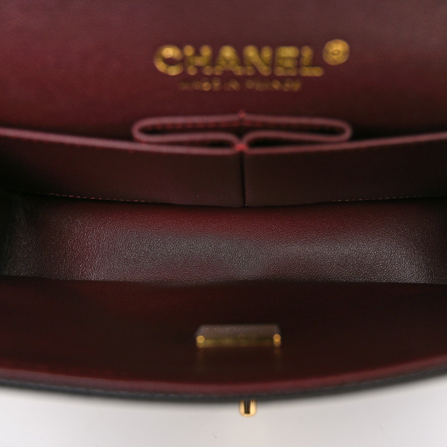 This is an authentic CHANEL Caviar Quilted Small Double Flap in Black. This chic shoulder bag is crafted of diamond quilted caviar leather in black. The bag features a gold chain link leather threaded shoulder strap and front flap with a gold Chanel CC turn lock. The flap opens to an inner flap and a burgundy leather interior with patch pockets.Follow this item for alerts. Chanel is a registered trademark of Chanel. FASHIONPHILE is not affiliated with Chanel.