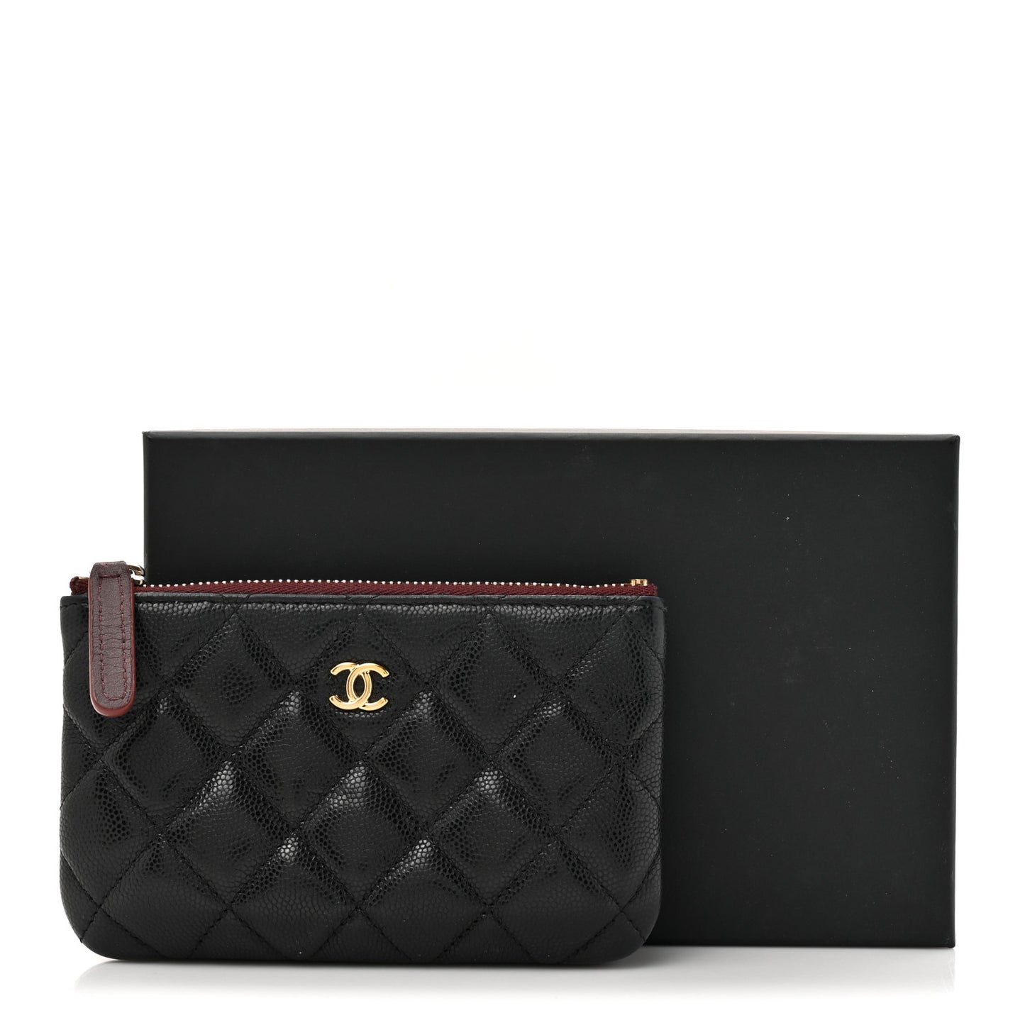 This is an authentic CHANEL Caviar Quilted Small Pouch in Black. This chic pouch is crafted of diamond quilted caviar leather in black, with a small gold Chanel CC logo on the front. The top zipper opens to a burgundy nylon interior.Follow this item for alerts. Chanel is a registered trademark of Chanel. FASHIONPHILE is not affiliated with Chanel.