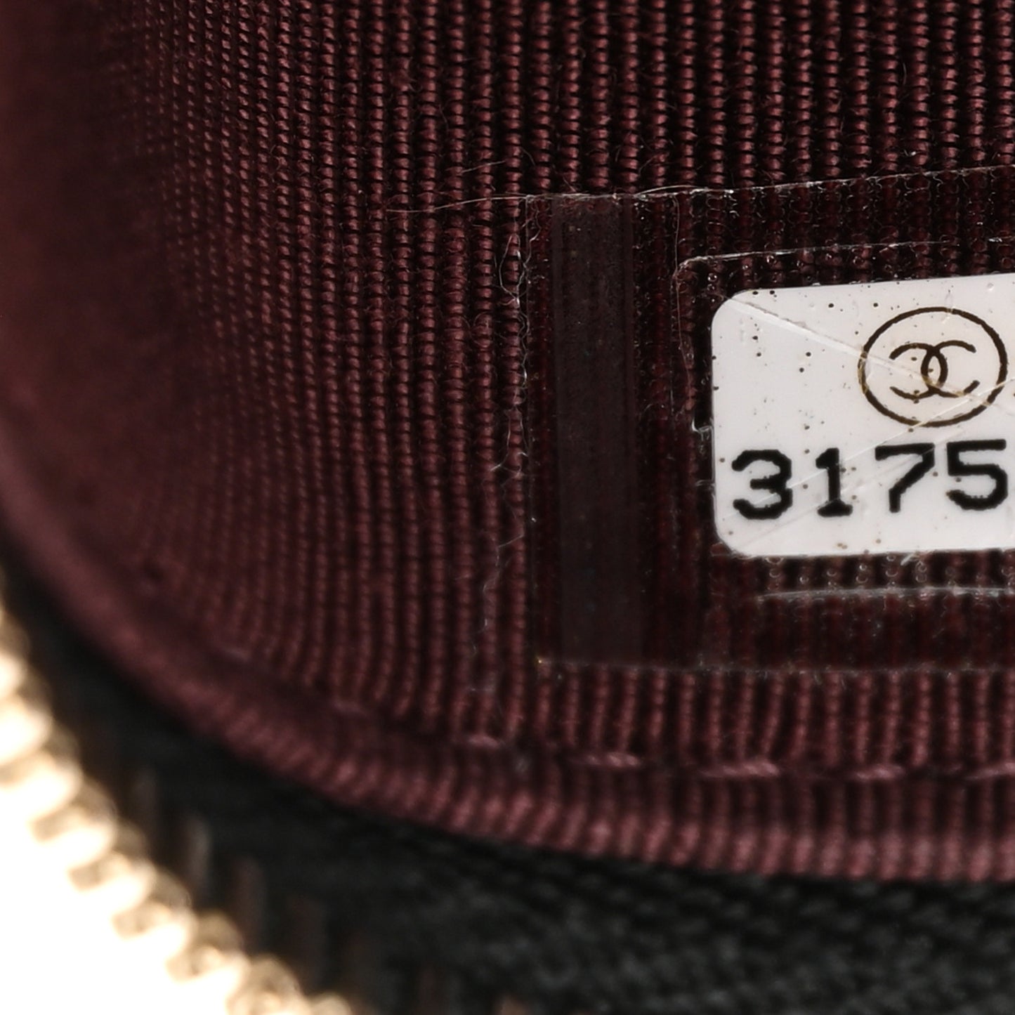 This is an authentic CHANEL Caviar Quilted Small Vanity Case With Chain in Black. This stylish crossbody is crafted of luxurious caviar leather in black. The bag features a leather threaded gold chain-link shoulder strap and gold hardware. The 3/4 wrap-around zipper opens to a burgundy leather interior.Follow this item for alerts. Chanel is a registered trademark of Chanel. FASHIONPHILE is not affiliated with Chanel.
