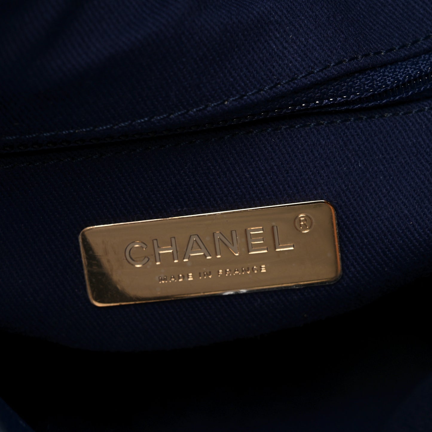 This an authentic CHANEL Caviar Stitched Large Shopping Tote Bag in Blue. This stylish tote is crafted of luxurious diamond stitched caviar leather in blue. The bag features an aged gold chain shoulder strap with a leather shoulder pad, leather top handles, and an aged gold Chanel CC turnlock on the front. The shoulder bag top opens to a black fabric interior with zipper pockets.Follow this item for alerts. Chanel is a registered trademark of Chanel. FASHIONPHILE is not affiliated with Chanel.