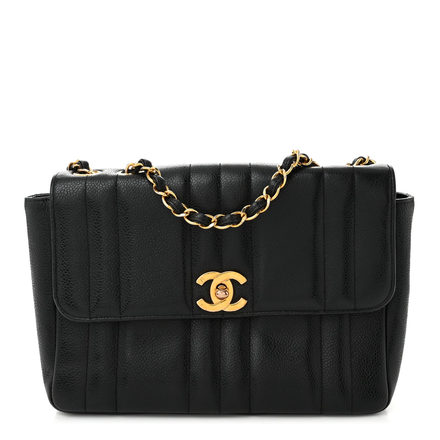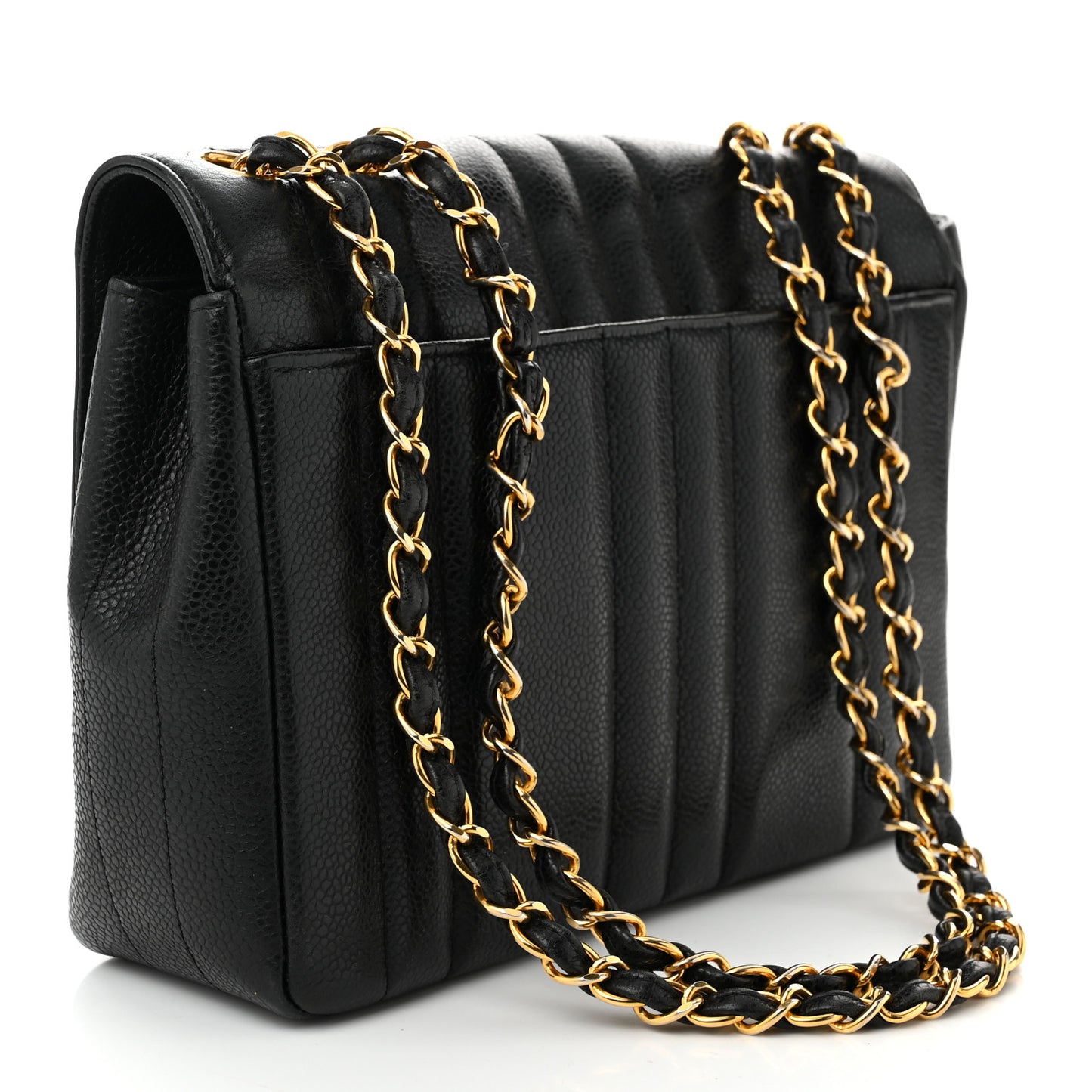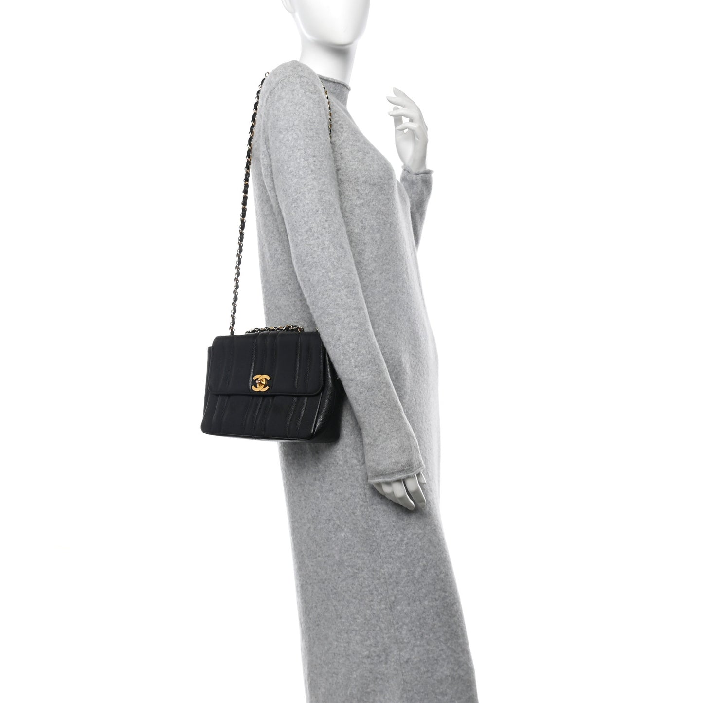 This is an authentic CHANEL Caviar Vertical Quilted Small Single Flap in Blue. This stylish flap bag is finely crafted of vertical quilted black caviar leather. The bag features a gold chain-link shoulder strap threaded with black leather and a front flap with a gold plated Chanel CC turn lock. This opens to a black leather interior with a flat and zipper pocket.Follow this item for alerts. Chanel is a registered trademark of Chanel. FASHIONPHILE is not affiliated with Chanel.