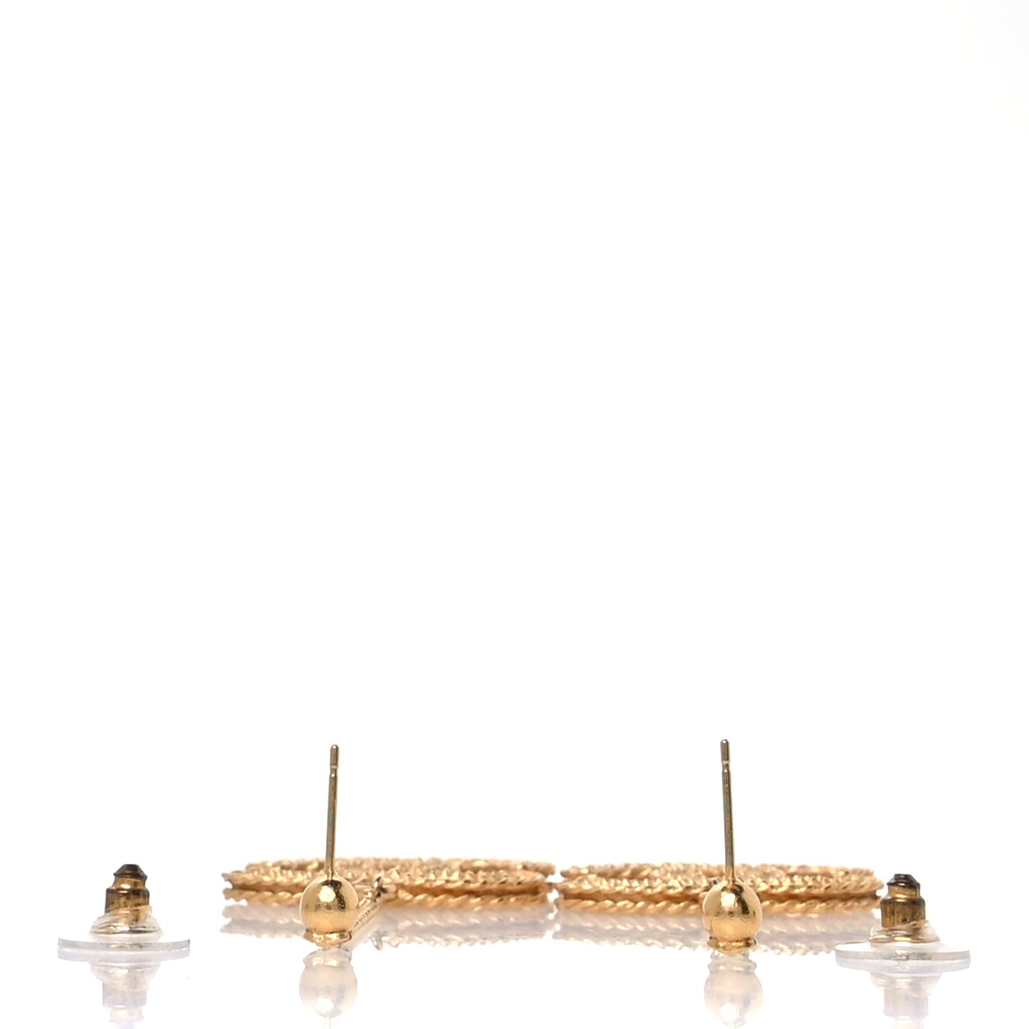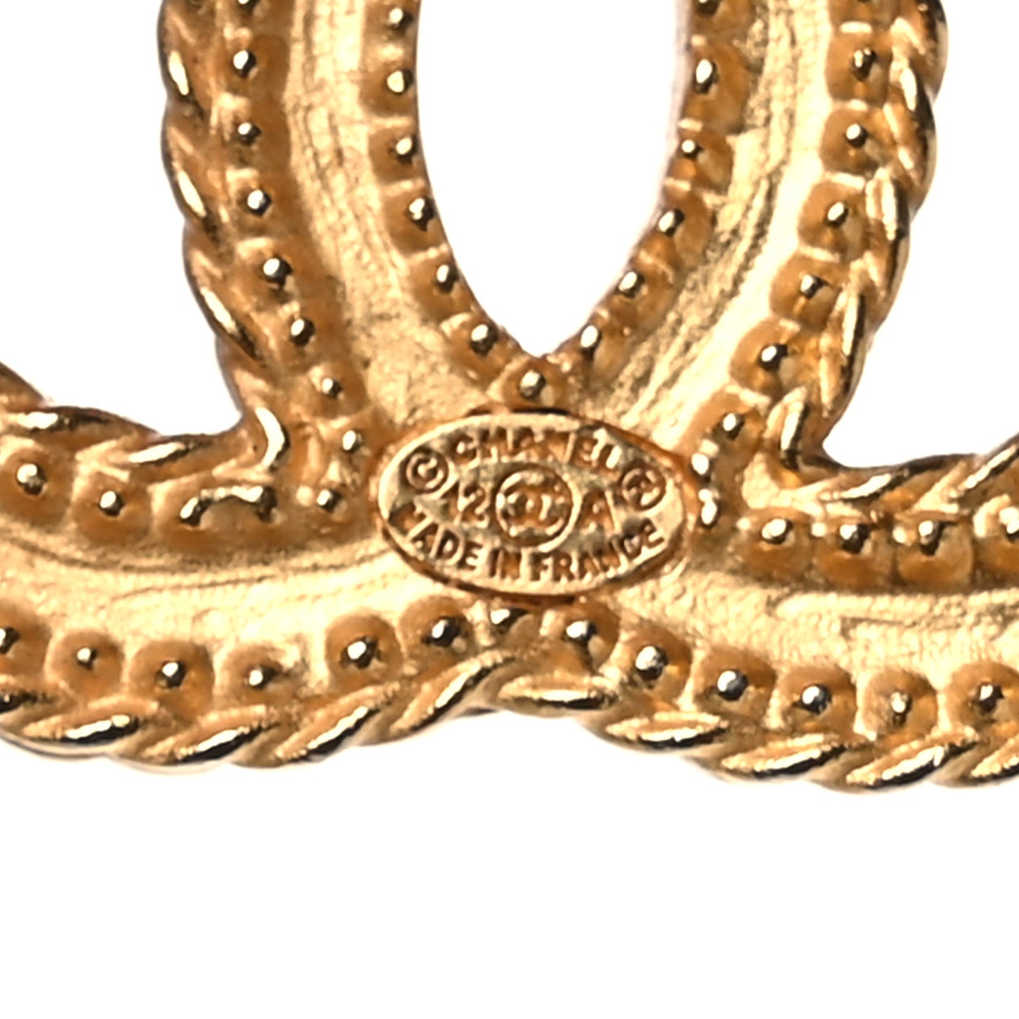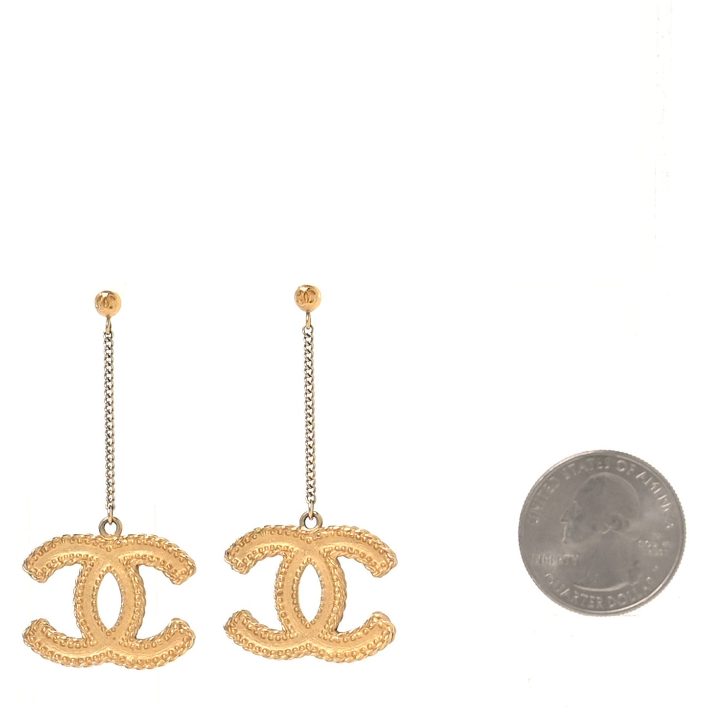 This is an authentic pair of CHANEL CC Drop Earrings in Matte Gold. These stylish earrings feature a roughly textured matte gold Chanel CC logo with "wheat" motif borders suspended on a chain.Follow this item for alerts. Chanel is a registered trademark of Chanel. FASHIONPHILE is not affiliated with Chanel.