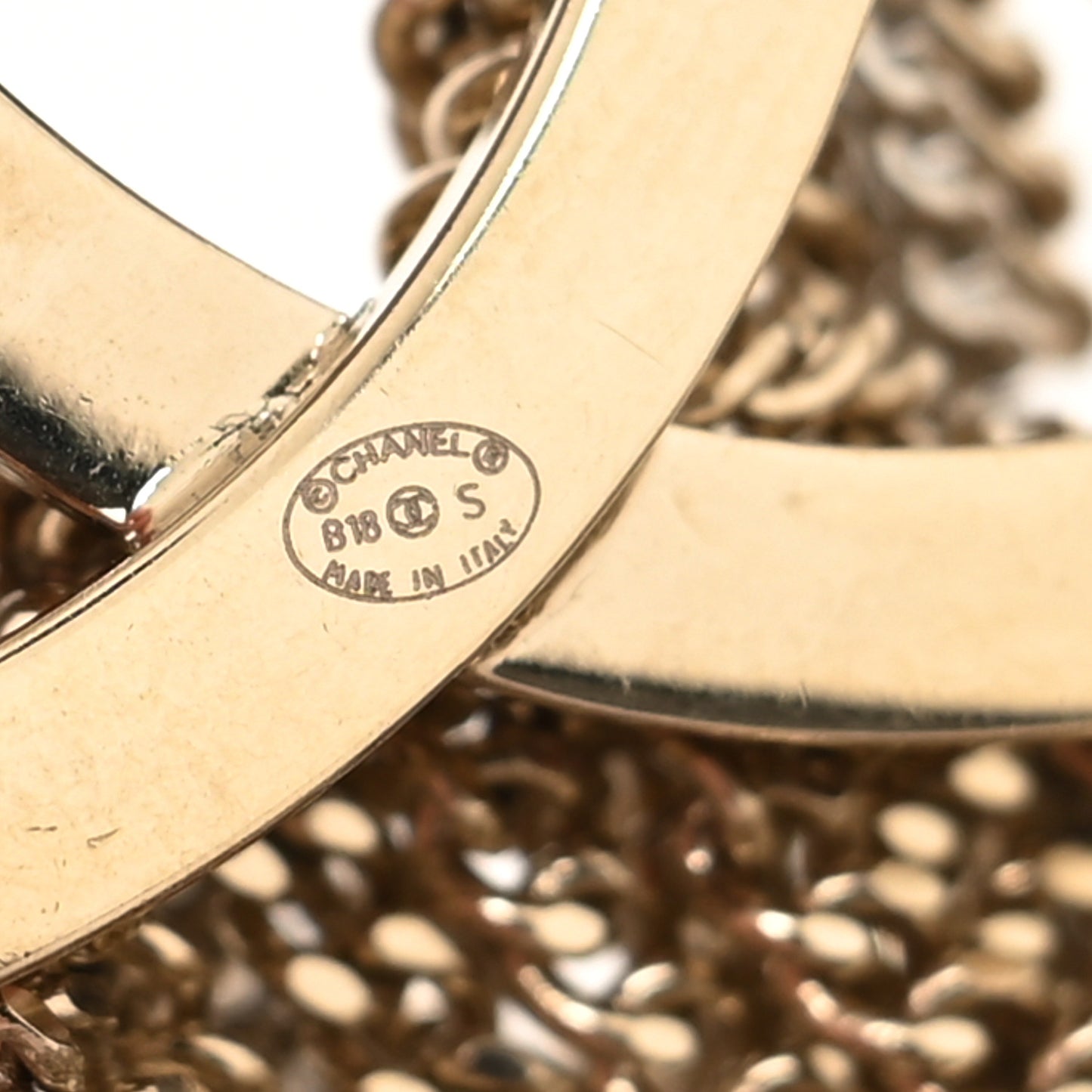 This is an authentic CHANEL Chain Fringe CC Brooch in Gold. This elegant brooch features a light gold CC logo, covered in dangling gold and silver chains.Follow this item for alerts. Chanel is a registered trademark of Chanel. FASHIONPHILE is not affiliated with Chanel.