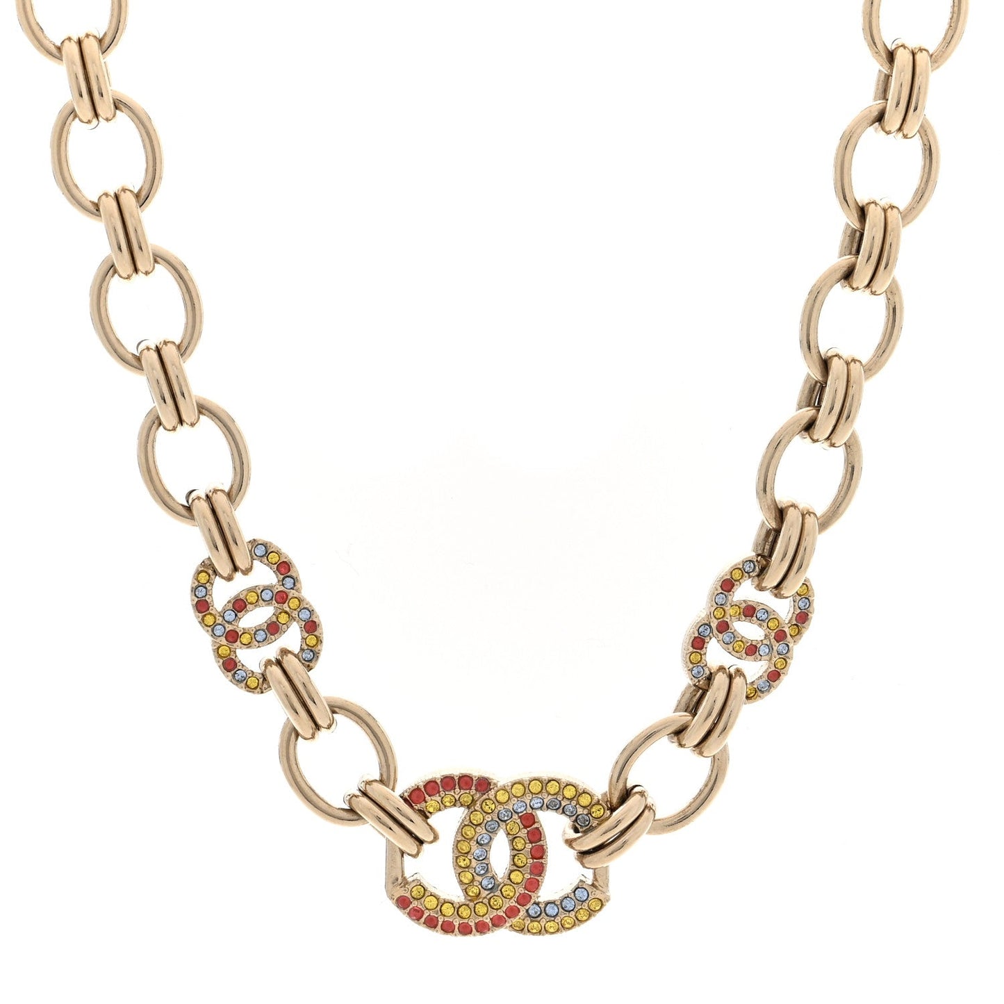 Crystal Chain CC Choker Necklace Gold Multicolor