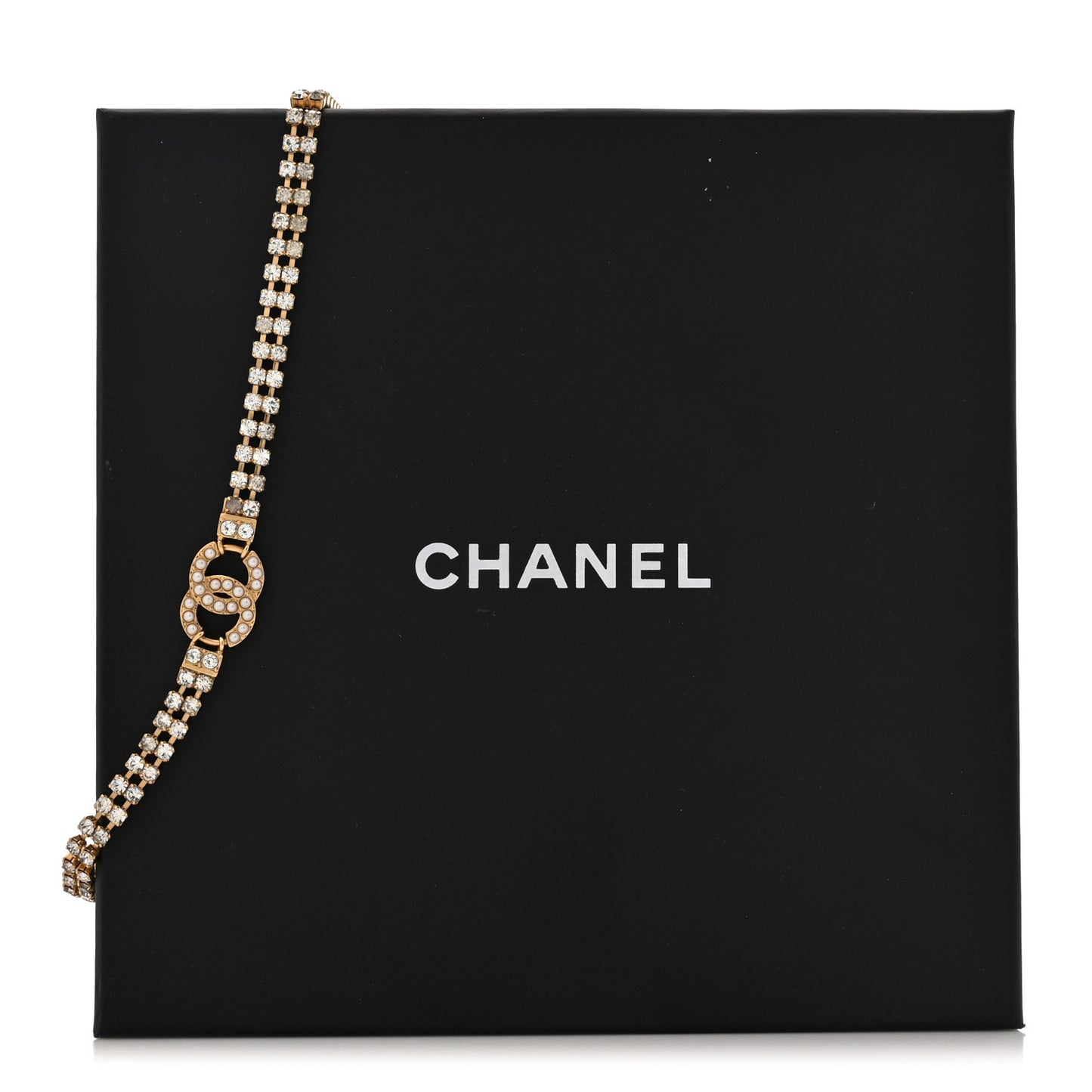 This is an authentic CHANEL Crystal Pearl CC Choker Necklace in Gold. This stunning choker necklace is crafted in a gold tone multi-strand encrusted crystals chain links with a pearl CC logo.Follow this item for alerts. Chanel is a registered trademark of Chanel. FASHIONPHILE is not affiliated with Chanel.