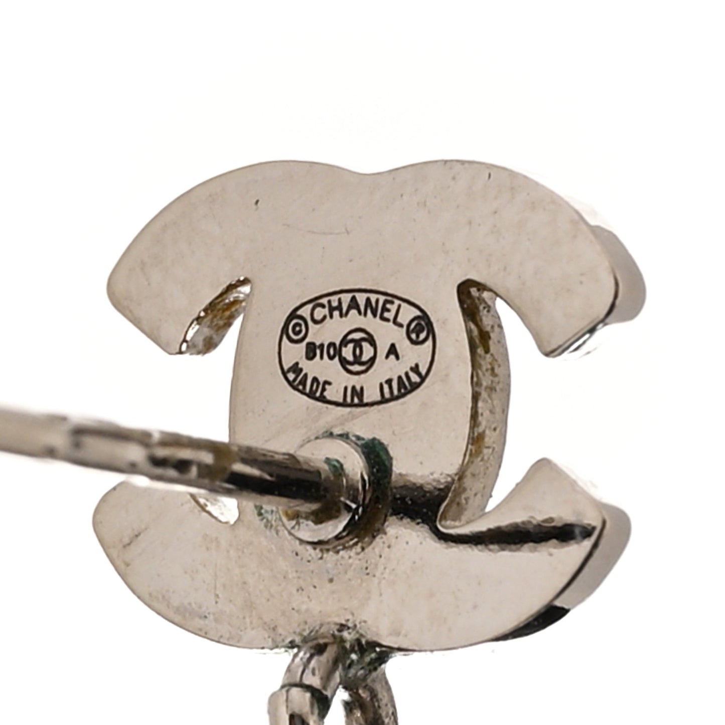 This is an authentic pair of CHANEL Crystal Pearl CC Drop Earrings in Silver. These elegant earrings feature a silver Chanel CC logo encrusted with crystals and a dangling white resin pearl.Follow this item for alerts. Chanel is a registered trademark of Chanel. FASHIONPHILE is not affiliated with Chanel.