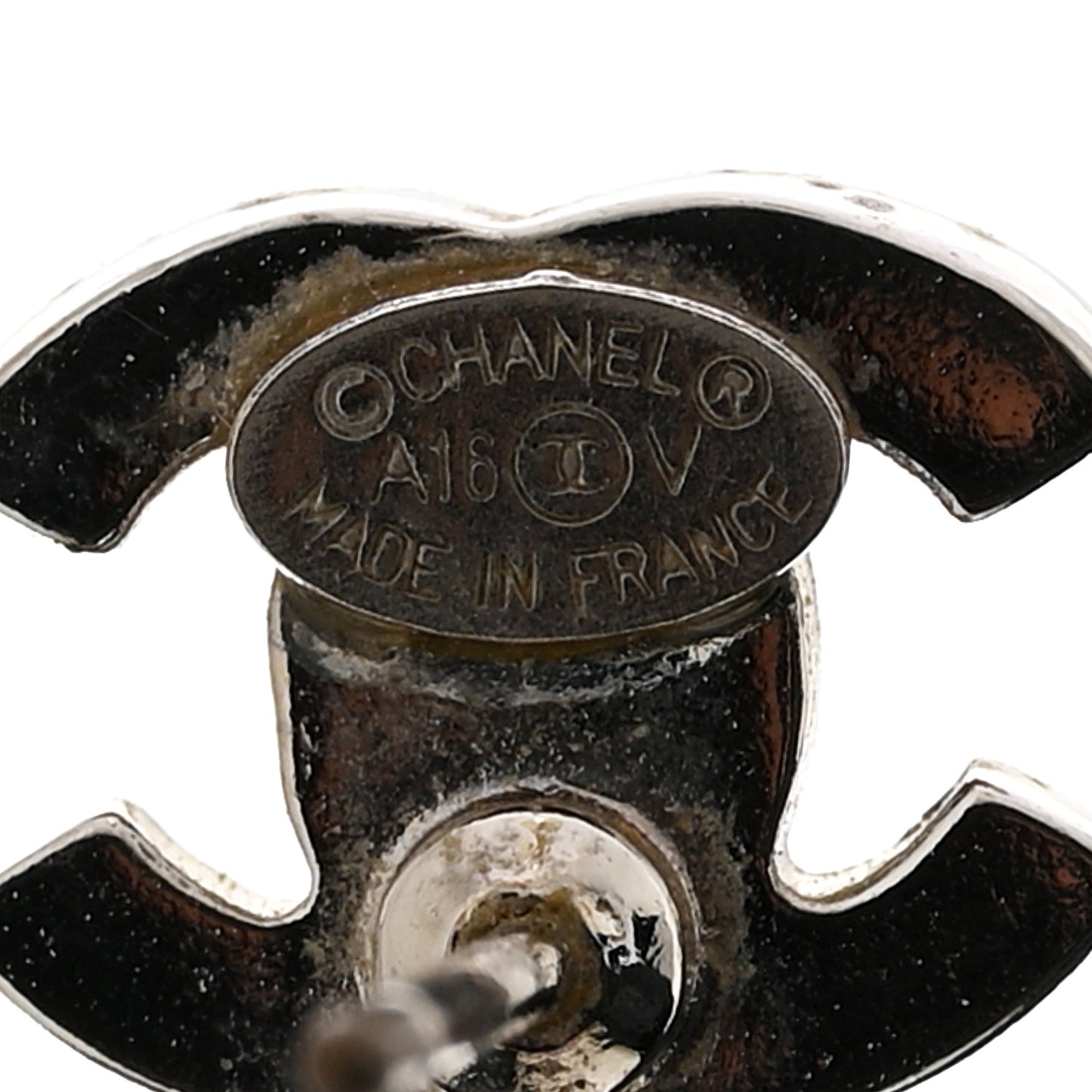 Chanel/ Jewelry/ Earrings /Chanel Crystal Pearl CC Drop Earrings Silver Pearly White