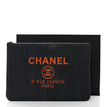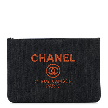Chanel/ Accessories/ Pouches /Chanel Denim Large Deauville Pouch Clutch Blue Orange