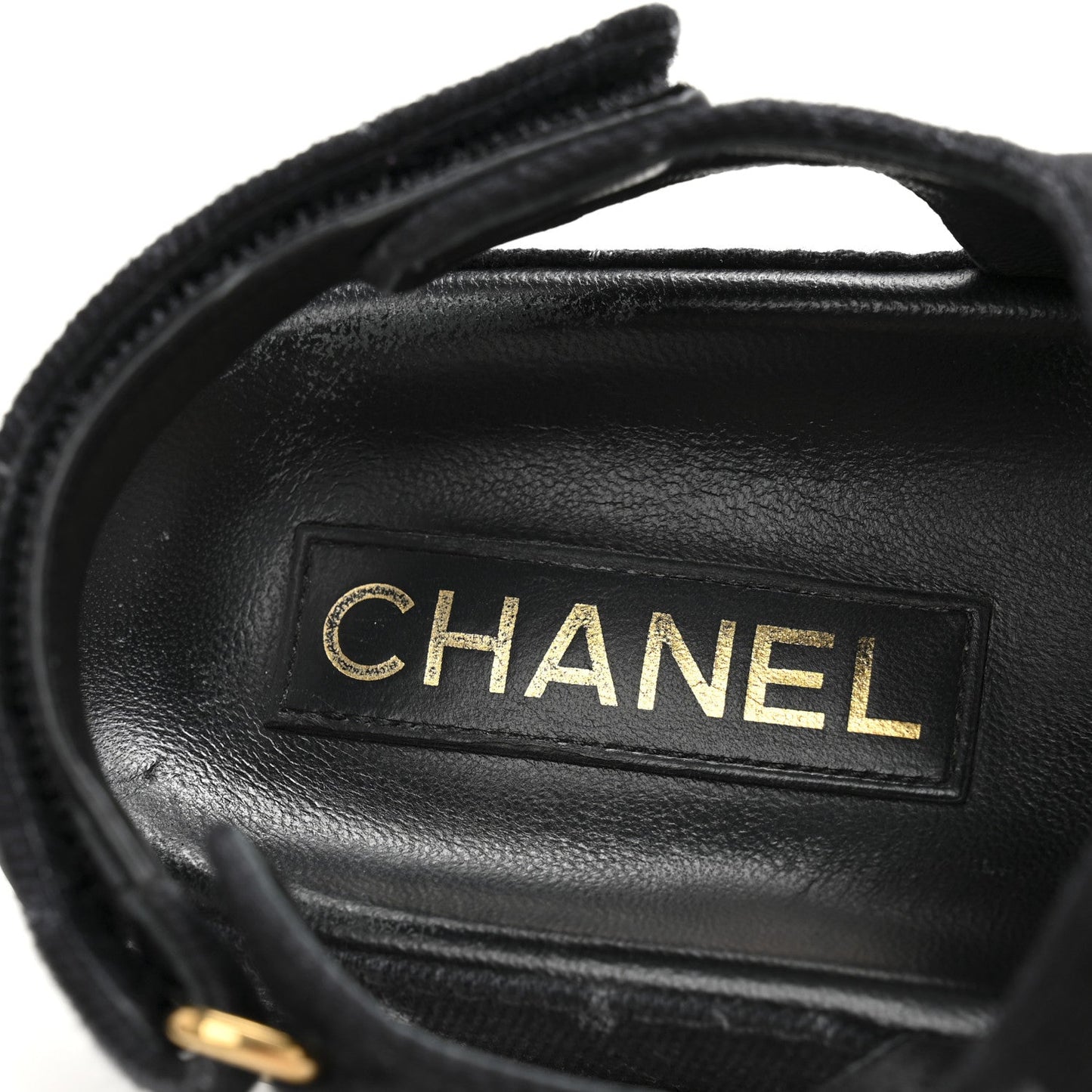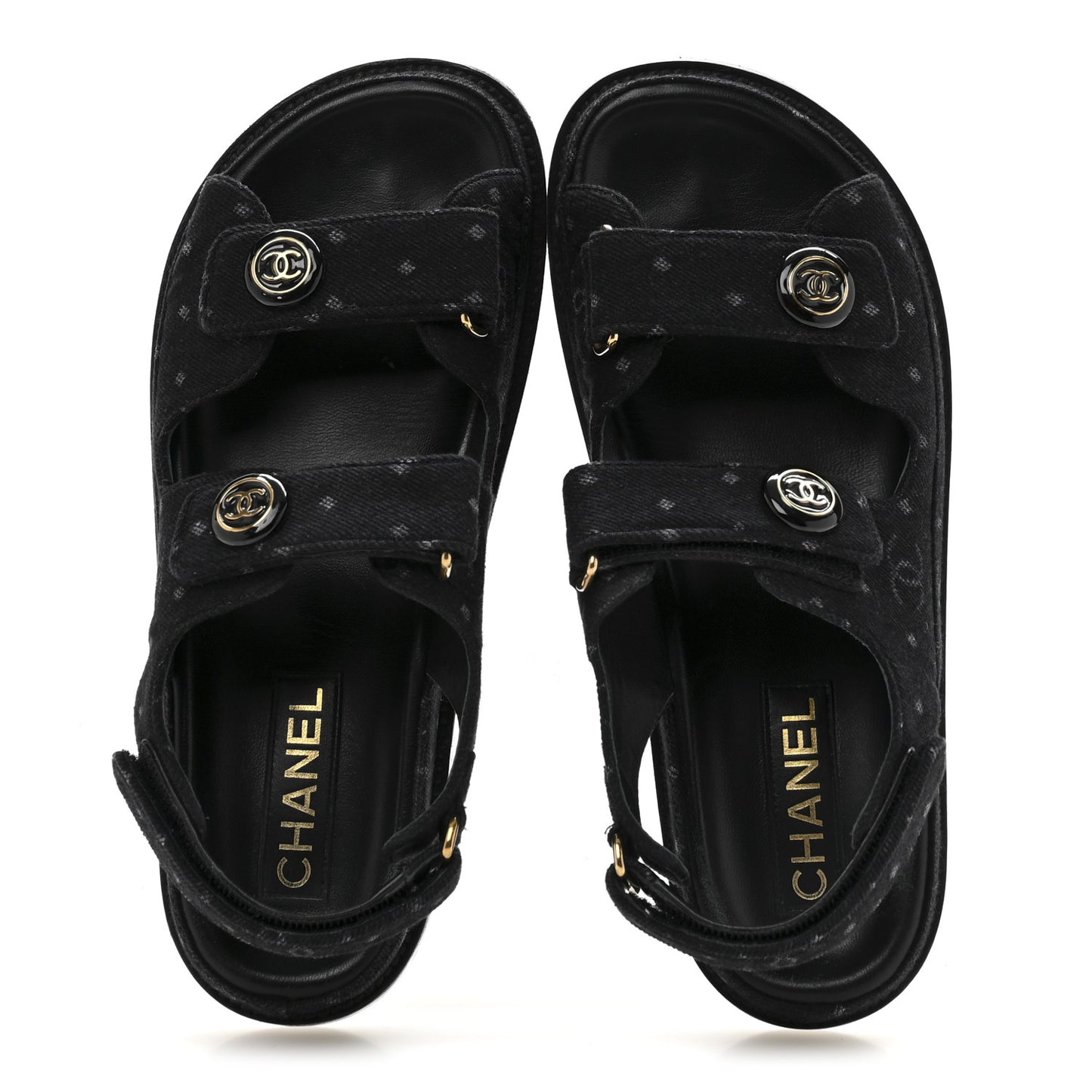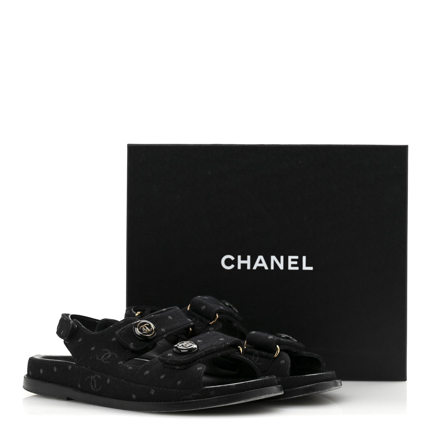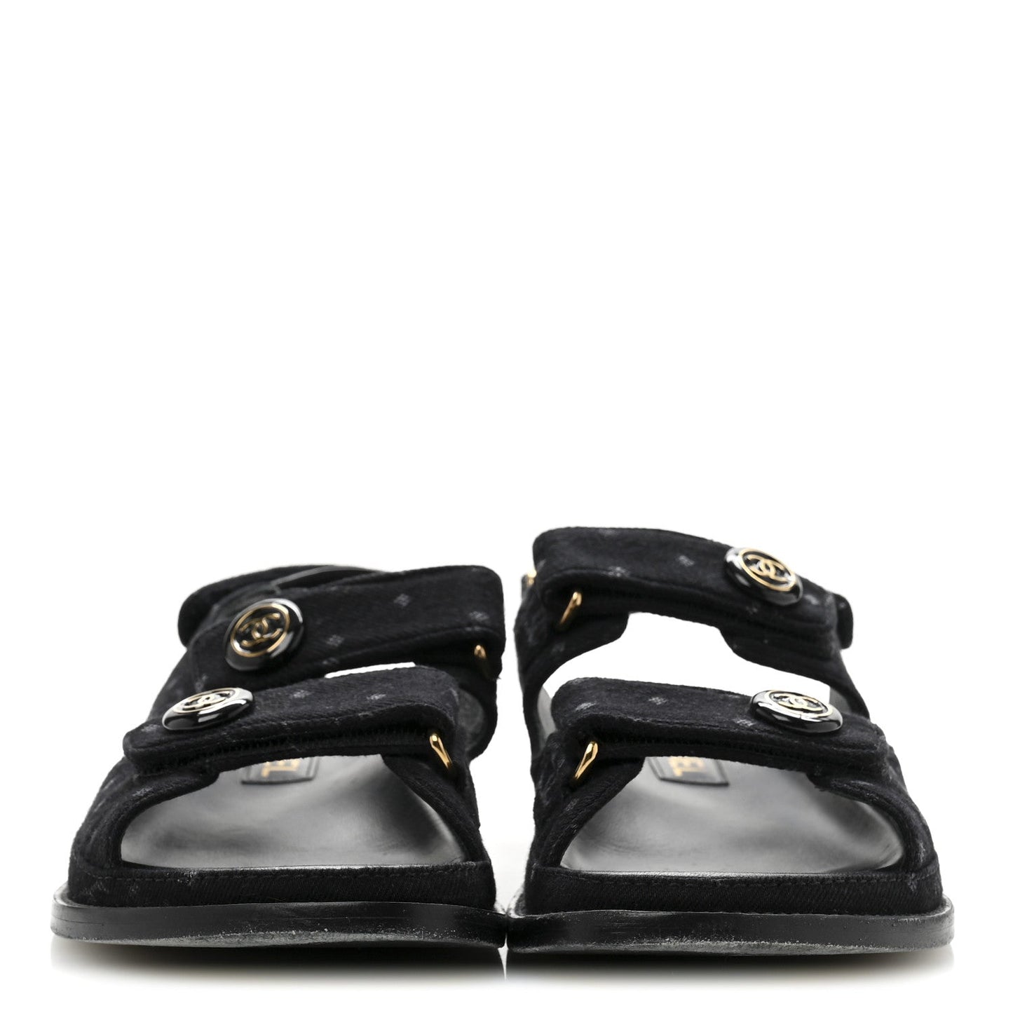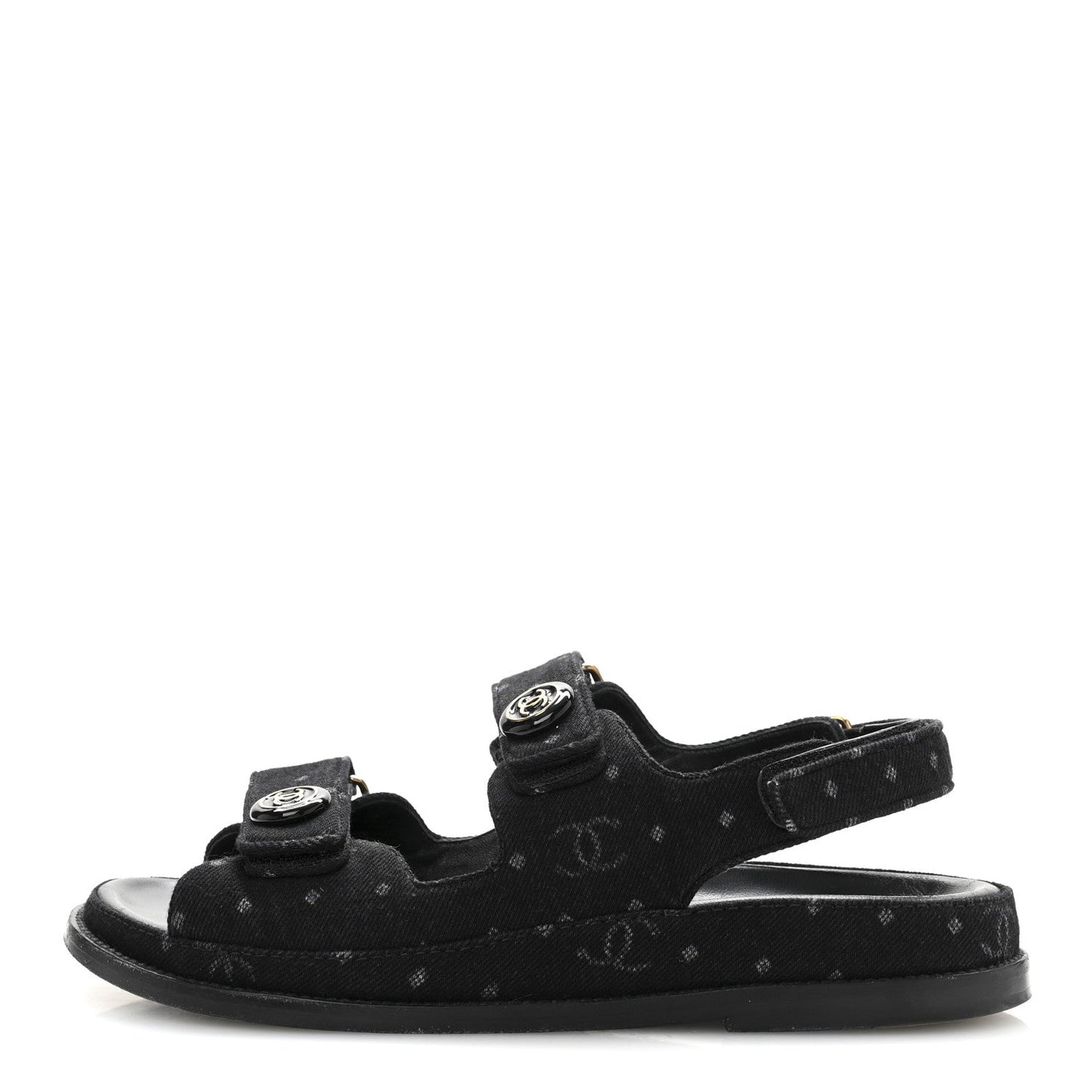 Chanel/ Accessories/ Shoes /Chanel Denim Printed Dad Sandals 39 Black