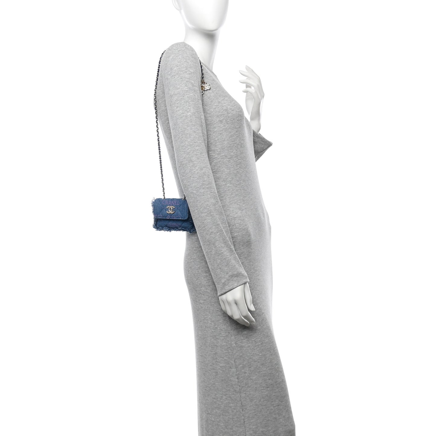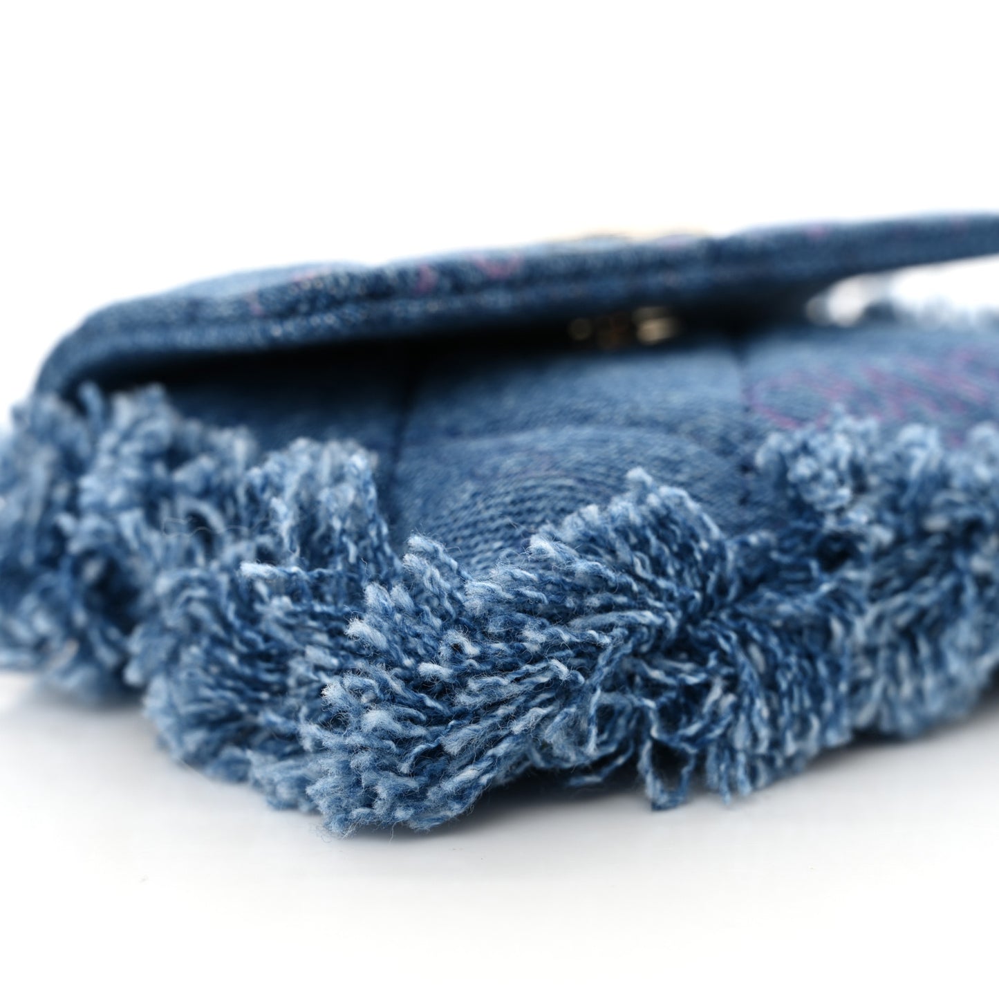 This is an authentic CHANEL Denim Quilted Denim Mood Belt Bag in Blue and Multicolor. The chic mini crossbody bag is crafted in soft quilted blue denim with multicolor Chanel logos. The bag features a gold chain-link leather threaded shoulder strap and a facing classic gold CC logo. This opens the flap to a matching denim interior.Follow this item for alerts. Chanel is a registered trademark of Chanel. FASHIONPHILE is not affiliated with Chanel.