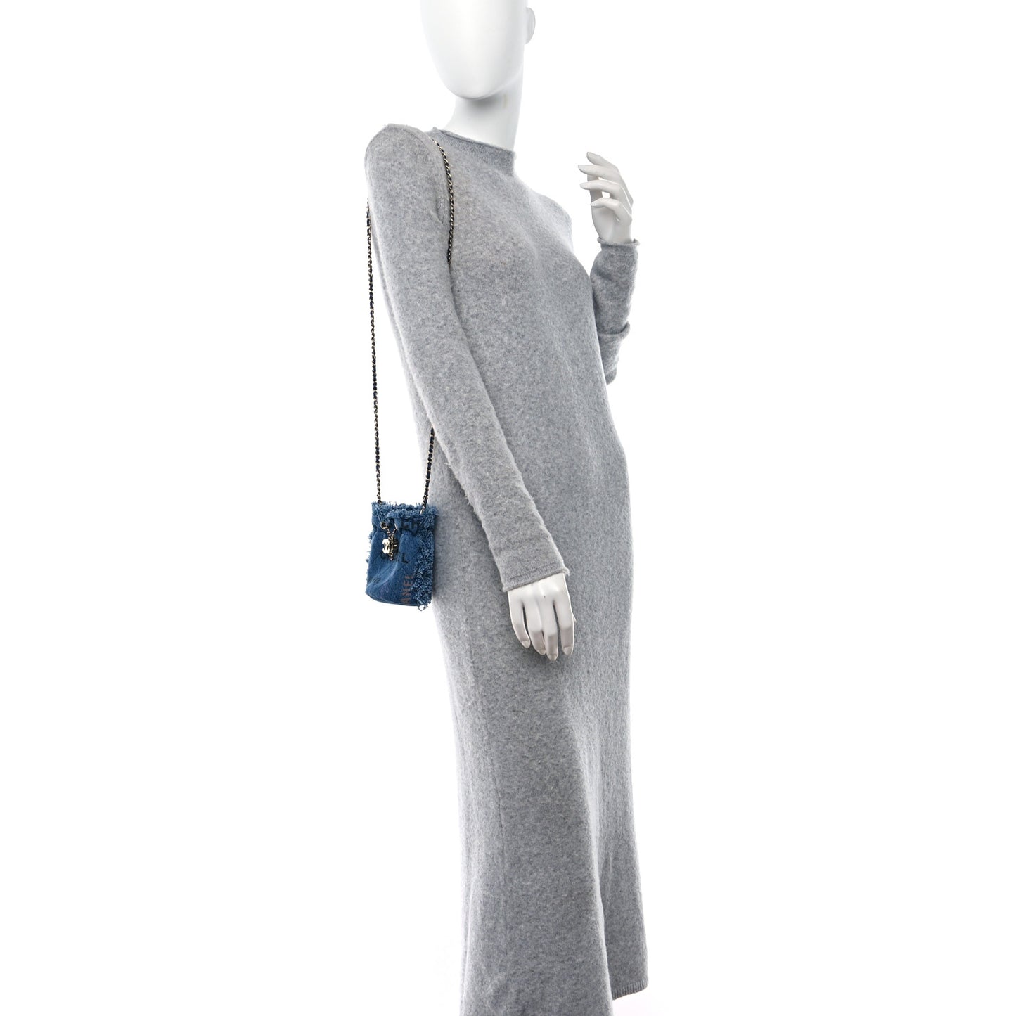 Chanel/ Bags/ Shoulder Bags /Chanel Denim Quilted Mood Mini Bucket With Chain Blue Multicolor