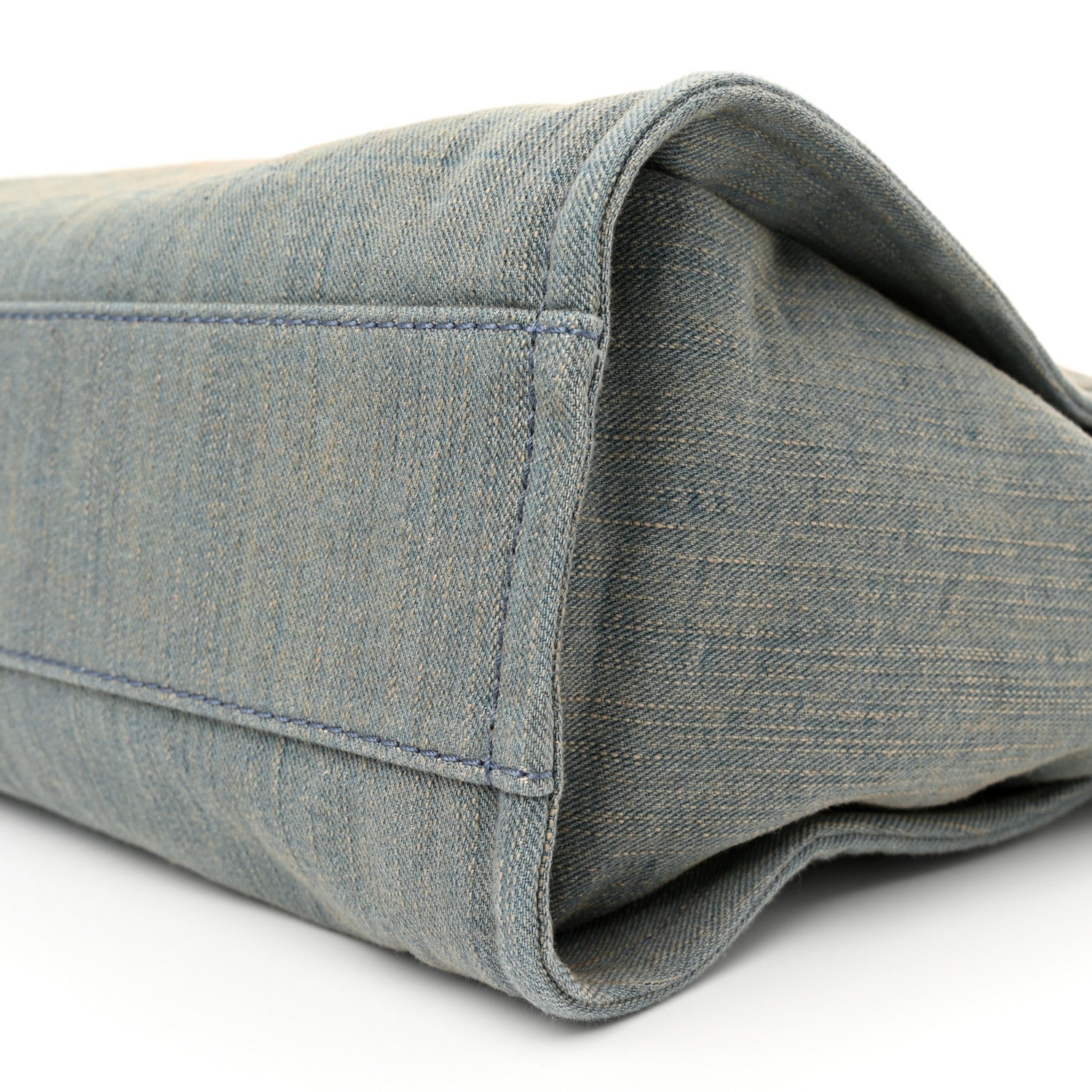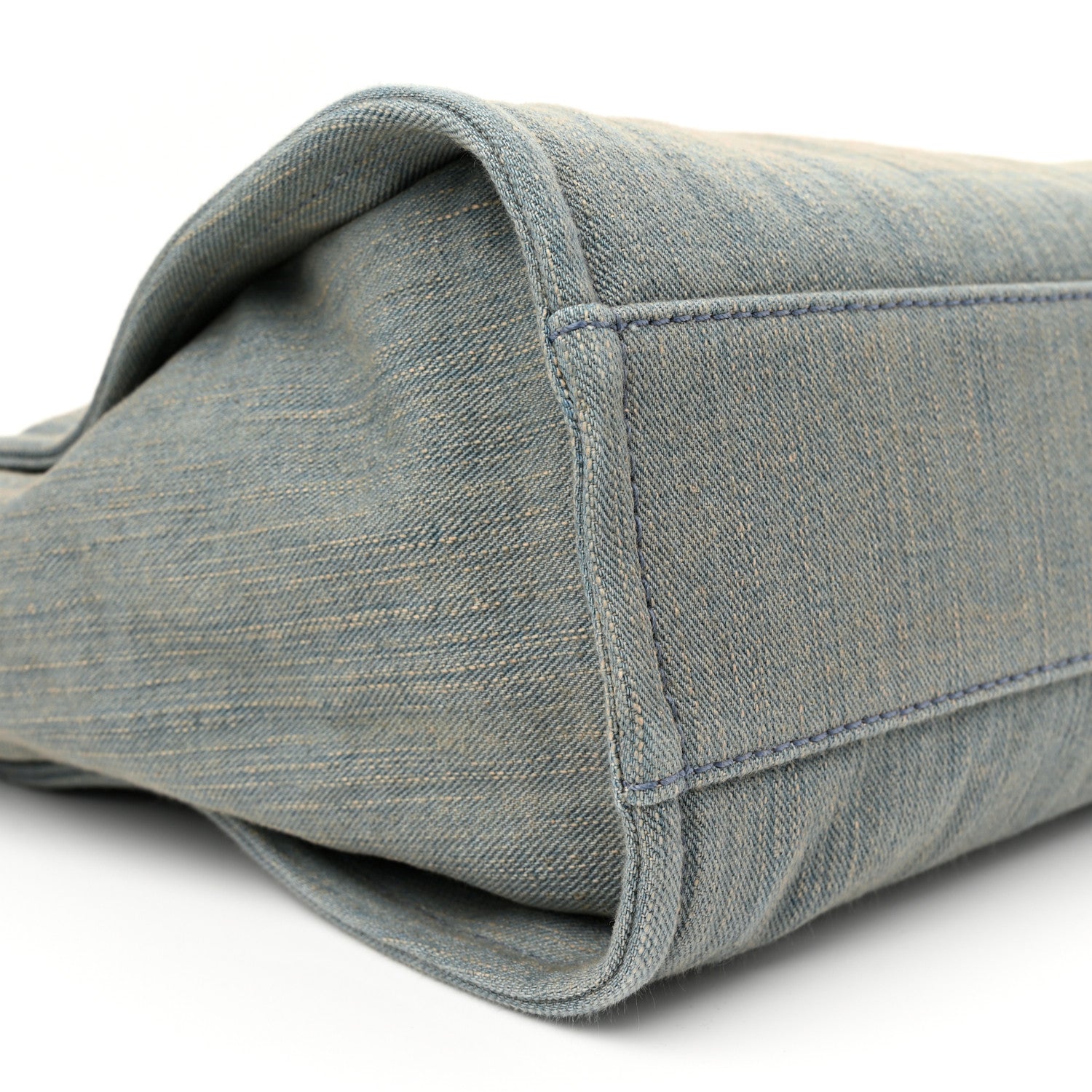 This is an authentic CHANEL Denim Small Deauville Tote in Light Blue. This lovely bag is crafted of fine blue denim with a Chanel advertisement logo. The shoulder bag features rolled denim top handles and matte silver chain link leather threaded shoulder straps. The bag has an open top and a blue fabric interior with zipper and patch pockets and a removable pouch.Follow this item for alerts. Chanel is a registered trademark of Chanel. FASHIONPHILE is not affiliated with Chanel.