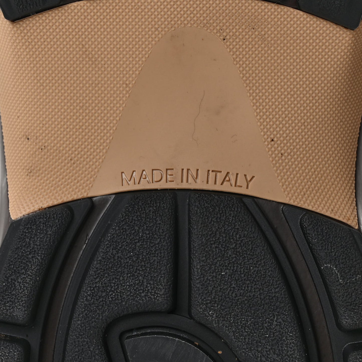 Fabric Laminated Calfskin Stretch CC Mens Sneakers 45 Brown Dark Grey