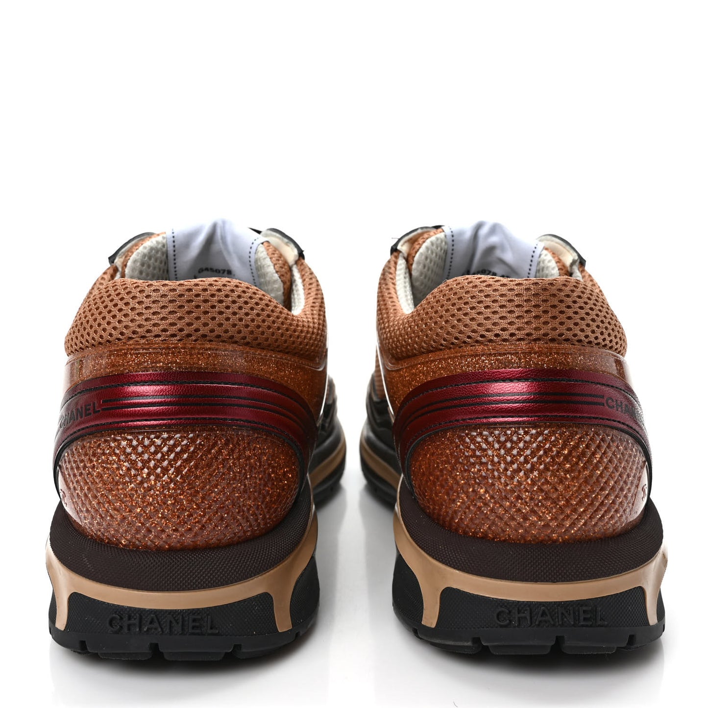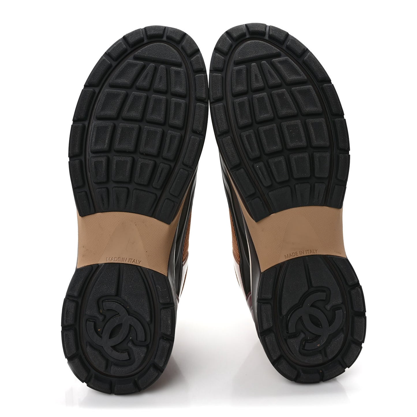 Chanel/ Accessories/ Shoes /Chanel Fabric Laminated Calfskin Stretch CC Mens Sneakers 45 Brown Dark Grey