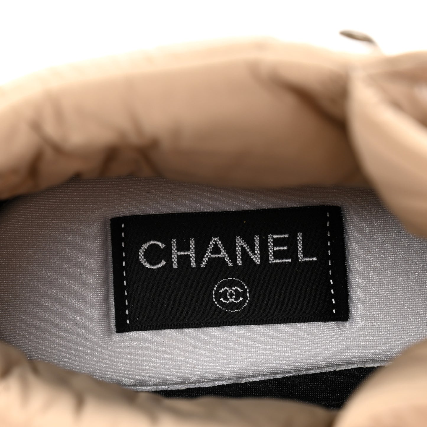 This is an authentic pair of CHANEL Fabric Suede Womens CC Sneakers 38 in Beige. These stunning sneakers are crafted of beige nylon with white calfskin and beige suede trim. The shoes feature a beige suede CC logo at the side and rugged rubber soles for traction.Follow this item for alerts. Chanel is a registered trademark of Chanel. FASHIONPHILE is not affiliated with Chanel.