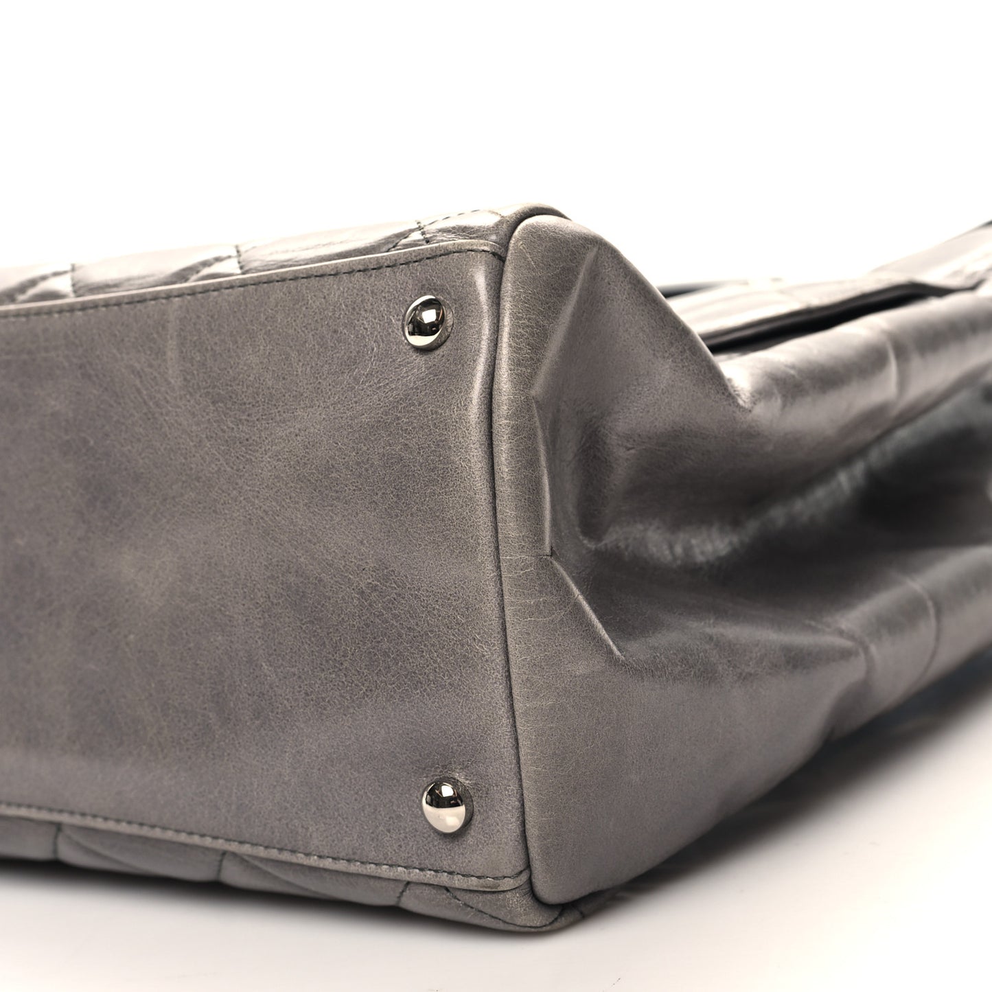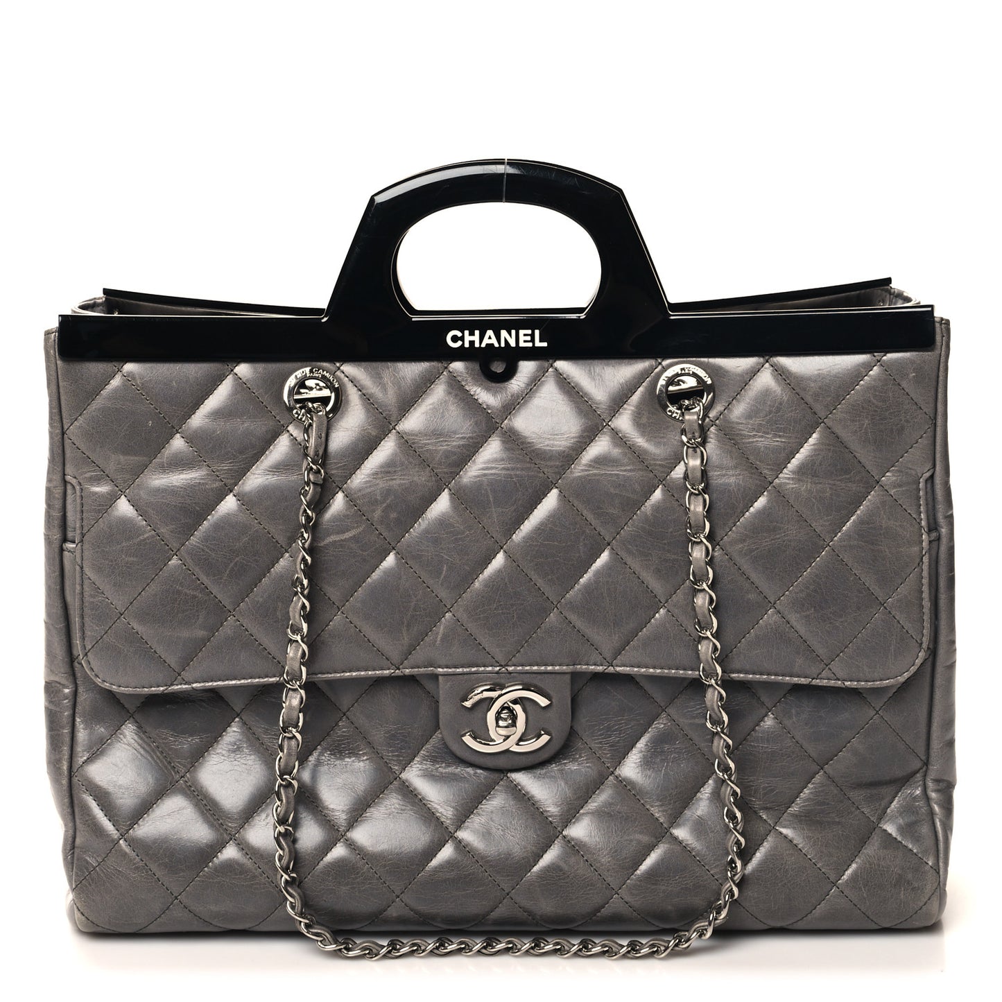 Glazed Calfskin Quilted Large CC Delivery Tote Grey