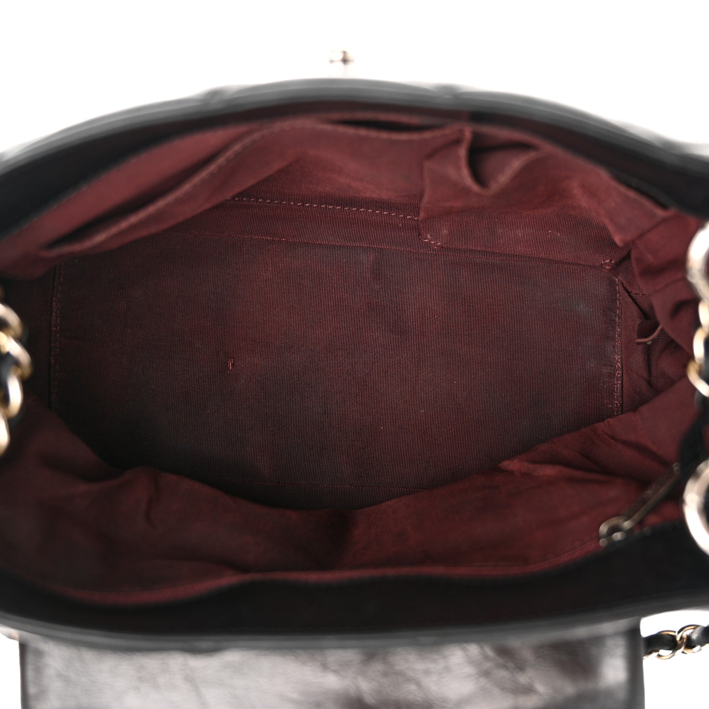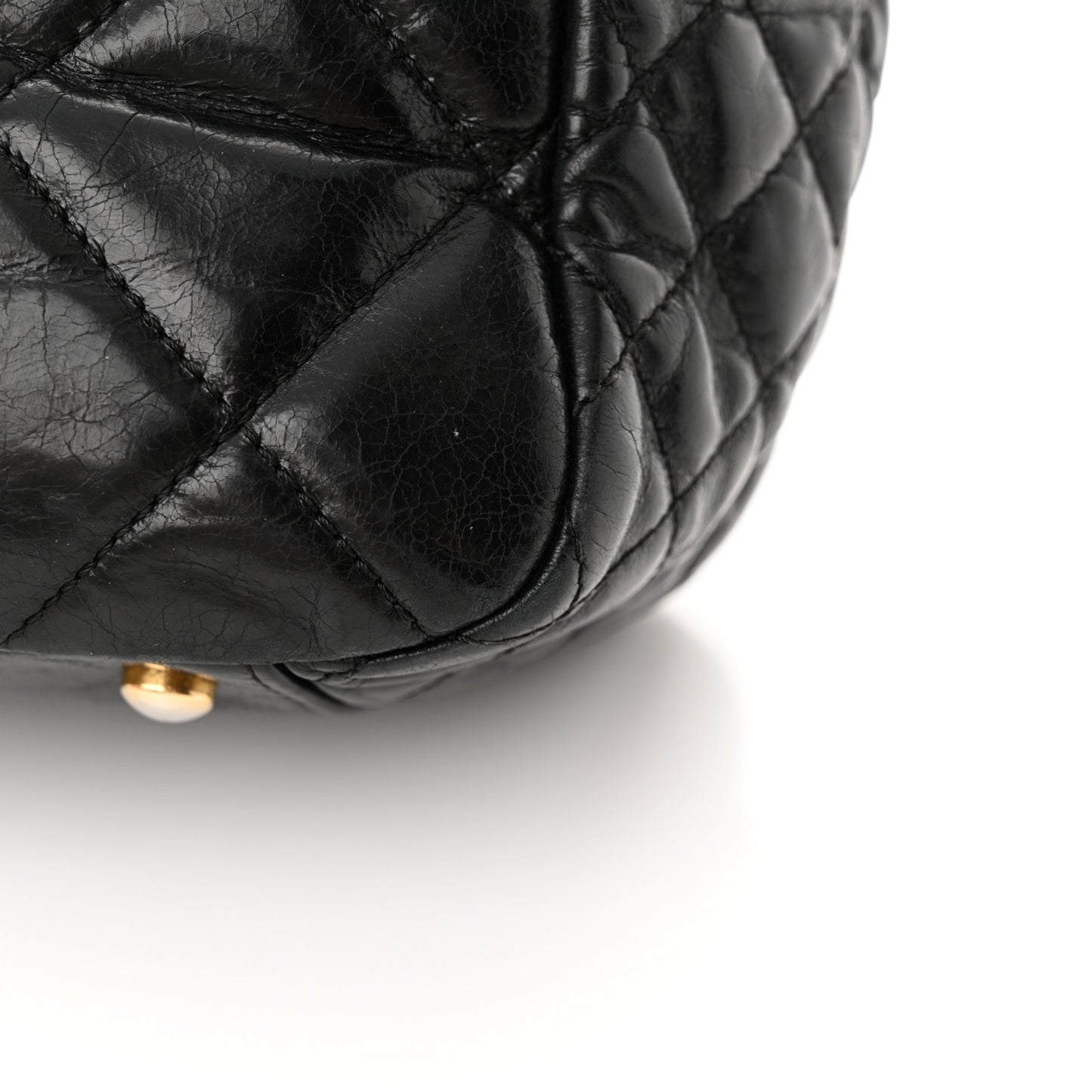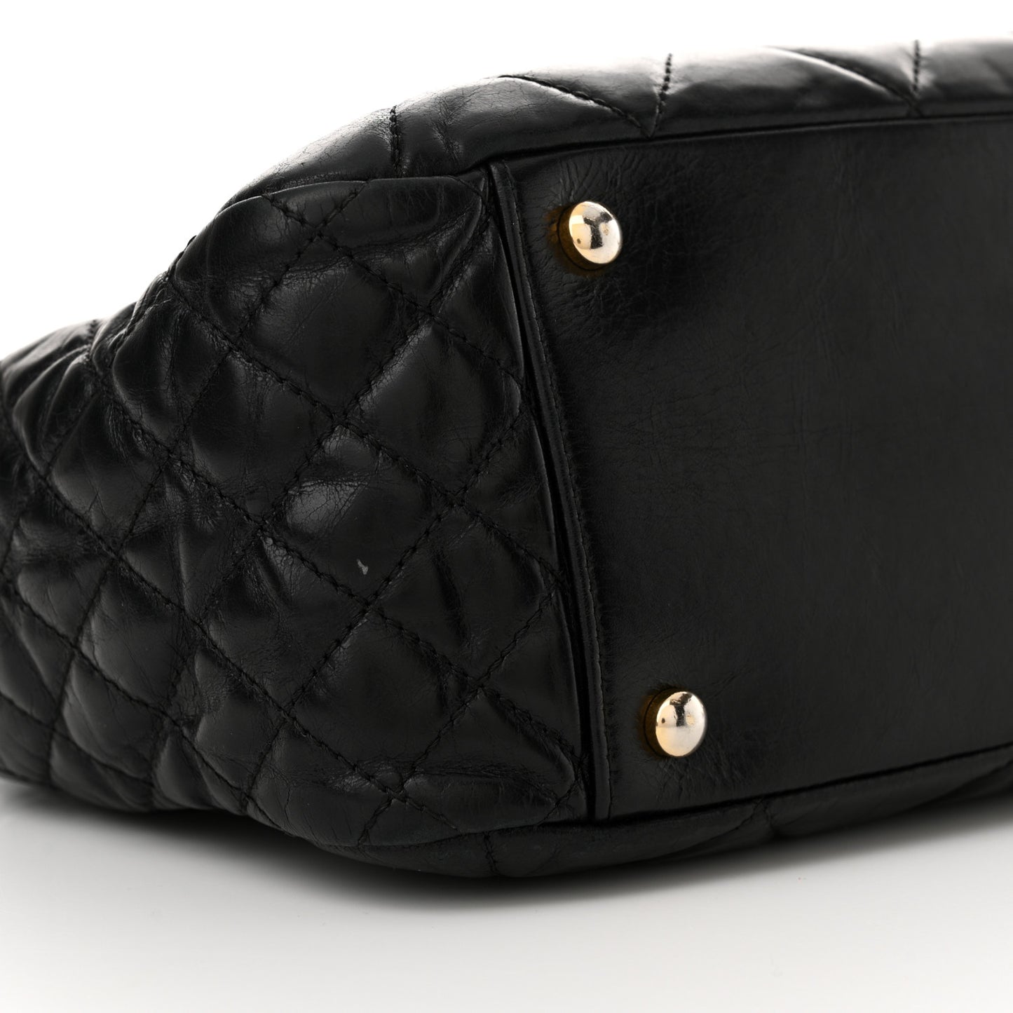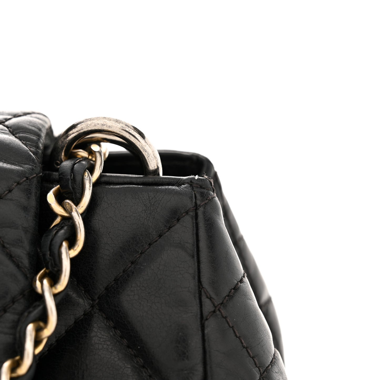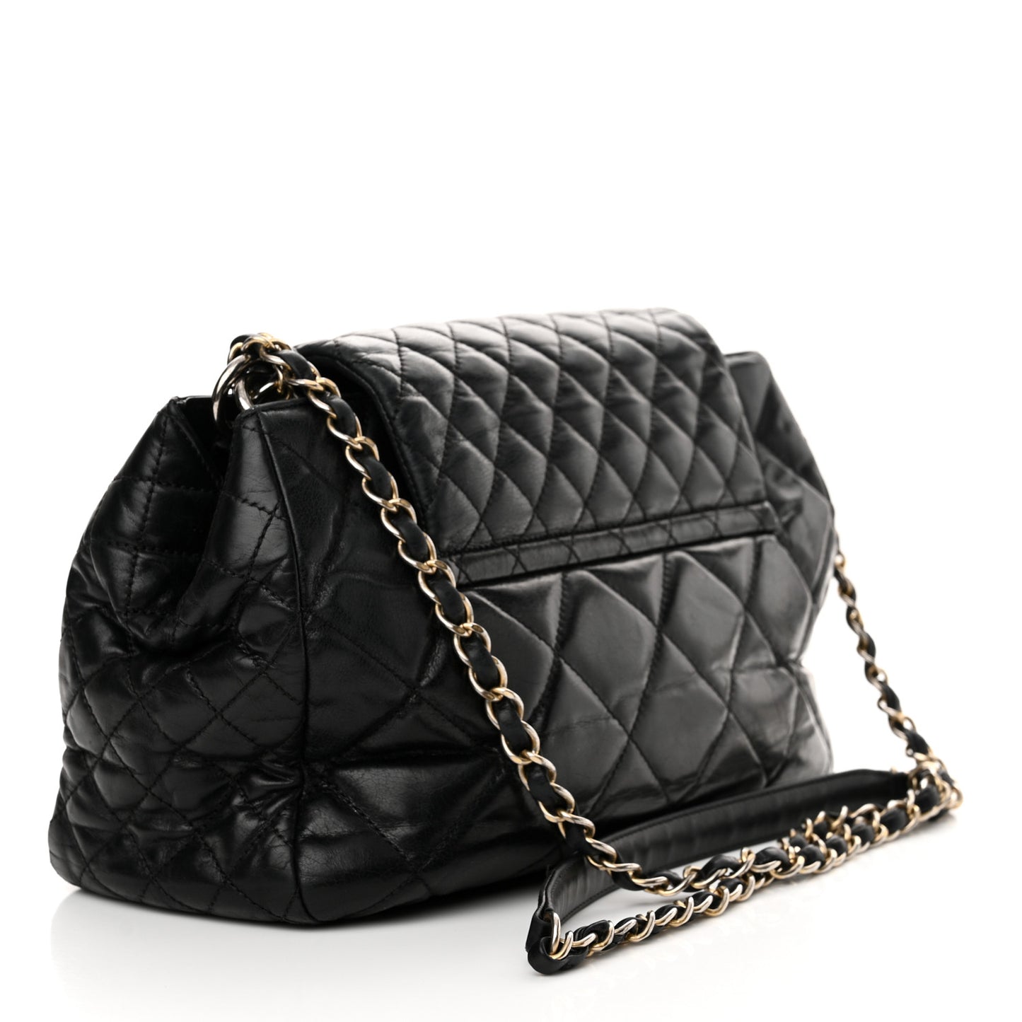 Glazed Calfskin Quilted Medium Daily Walk Flap Black